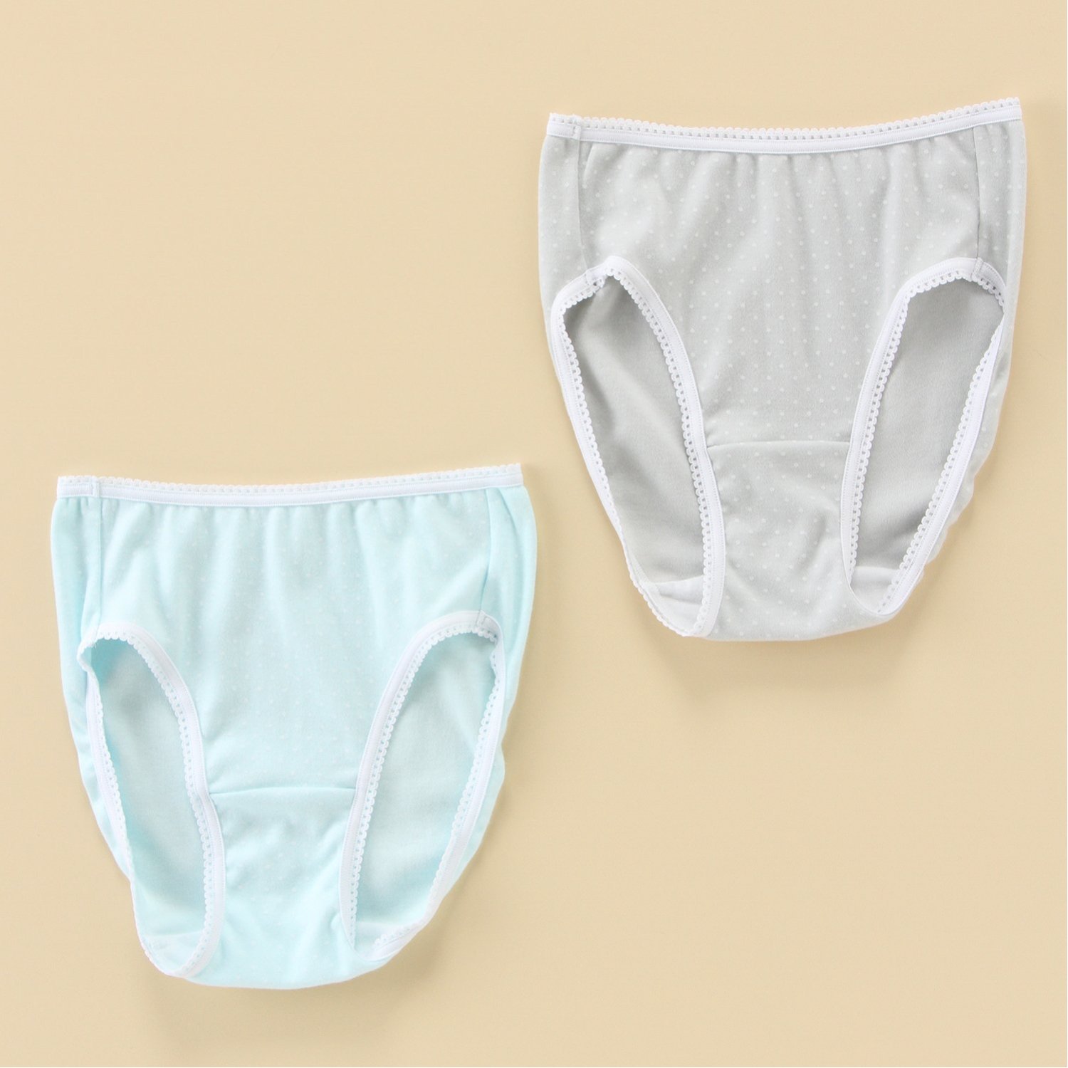【おすすめのポイント】・柔らかな肌触りの綿100%素材を使用・はき口 & 足口のピコレースがアクセントに・洗い替えに便利な2枚組をご用意シンプルでかわいいドット柄の日本製ショーツ。女の子らしい柔らかな色合いも魅力です。サラリとしたやさしいはき心地で、デイリーに活躍します。
