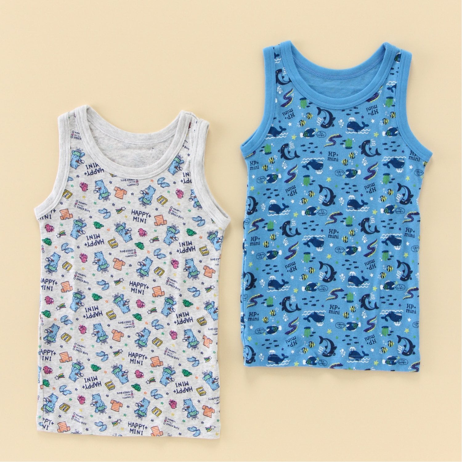 【おすすめのポイント】・お子さまの肌にやさしい綿100%素材を使用・内側にお名前が記入できるネームタグ付き・洗い替えに便利な2枚組をご用意サラリとした肌触りの薄手素材で仕上げたランニング。乗り物や動物、恐竜モチーフなど男の子の好きなデザインを色柄豊富に取り揃えました。デイリー使いにぴったりなインナーです。