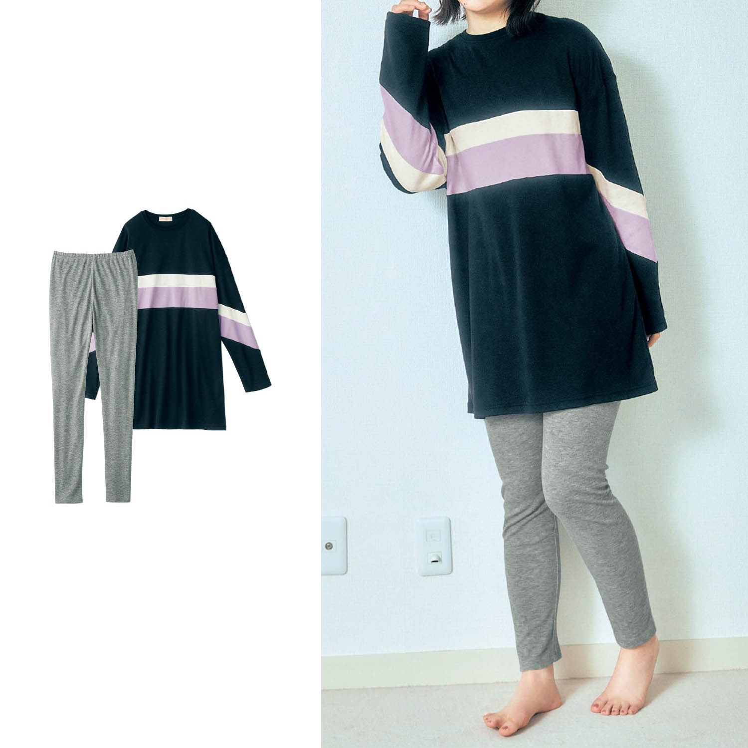 【パペル ラピス/Papel lapiz】ロング丈プルオーバー & レギンスパジャマ 【子供パジャマ 長袖】
