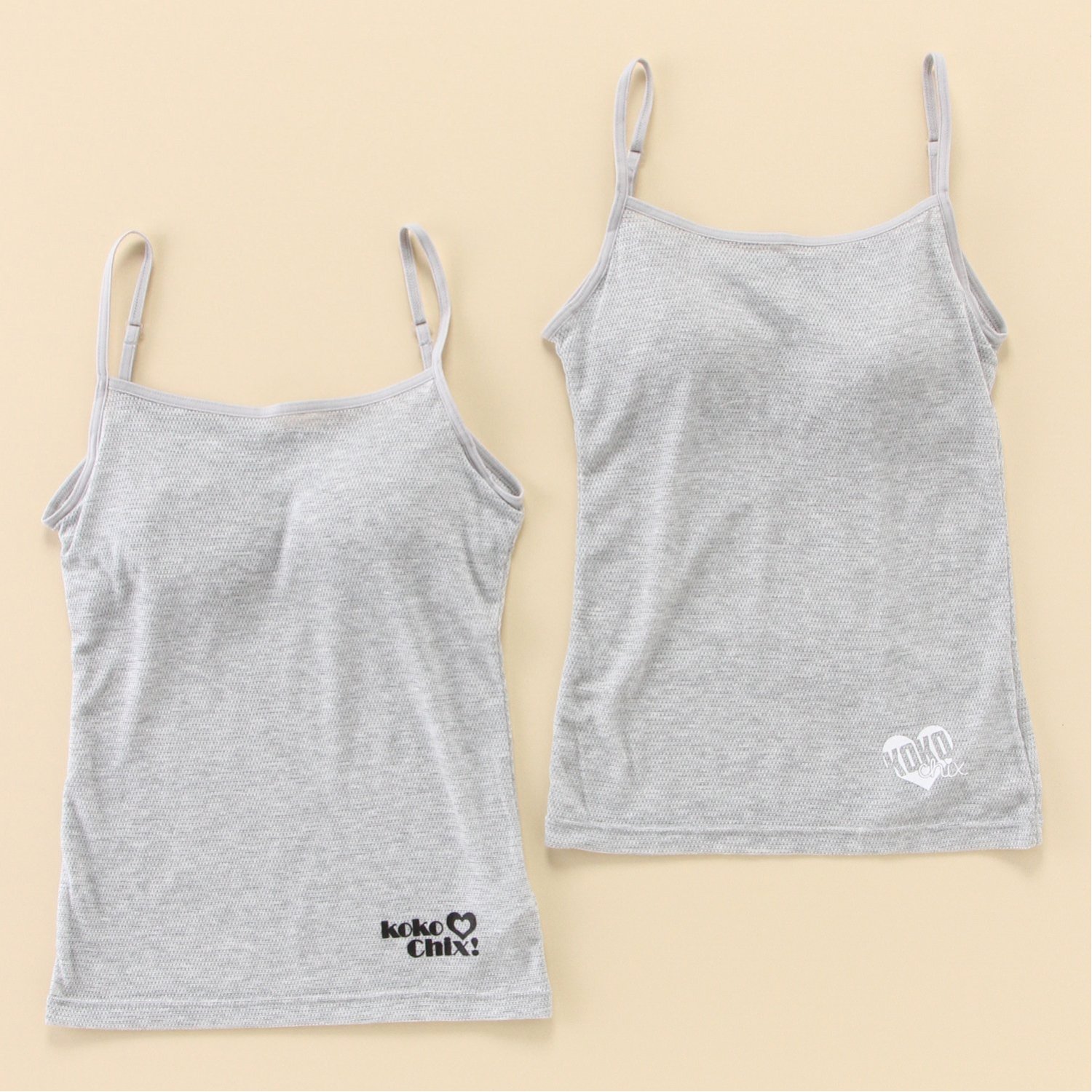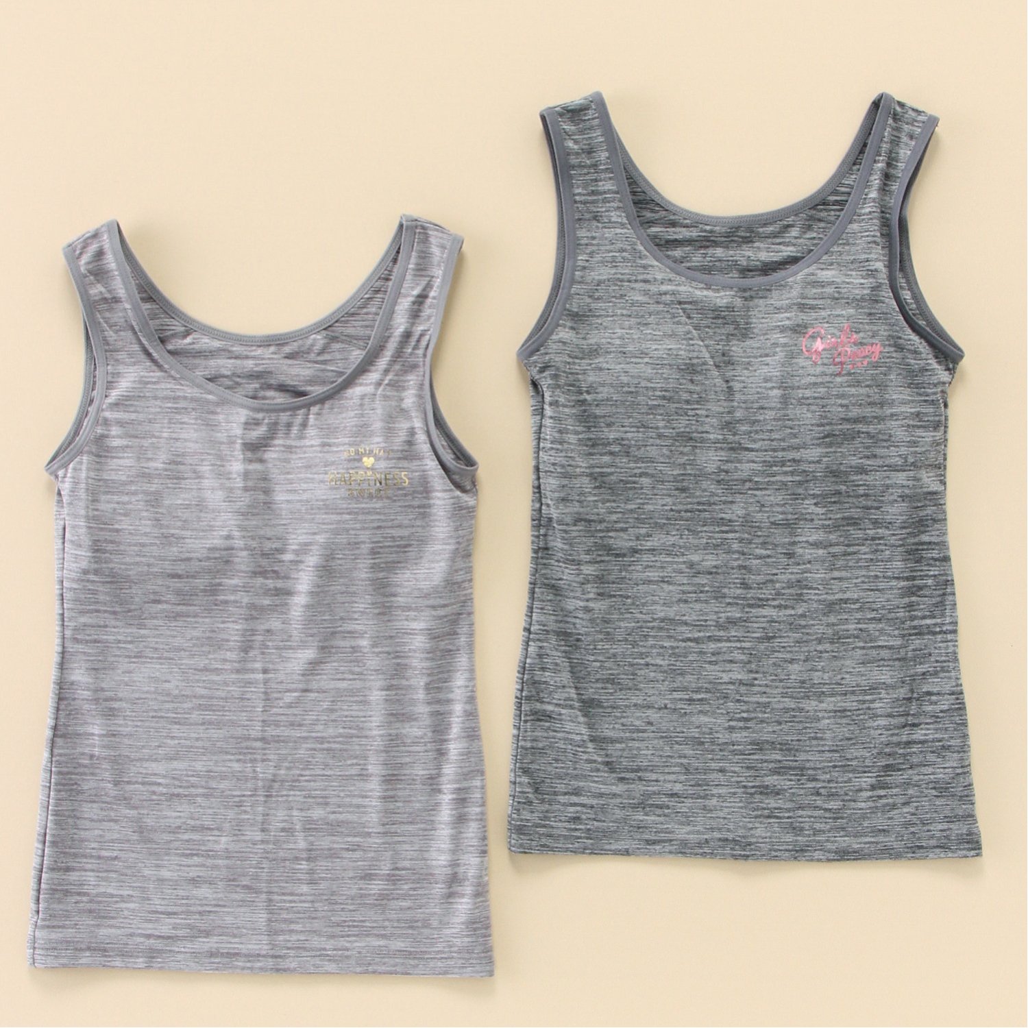 【こだわりのポイント】・カップはお好みで取り外しも可能・背中までアンダーゴムを配しフィット感アップ・内側にお名前が記入できるネームタグ付き・洗い替えに便利な2枚組をご用意左胸のロゴと杢調カラーがおしゃれなタンクトップです。カップを取り外して、胸二重インナーとしてもお使いいただけます。吸水速乾性のある生地で汗をかいてもべたつきにくく、通学や体育の授業にもおすすめです。