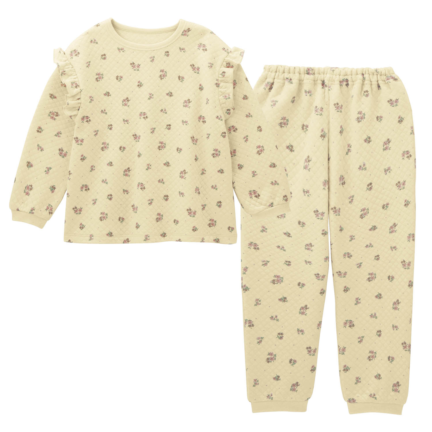 【ジータ/GITA】肩フリルあったかニットキルト総柄パジャマ 【子供パジャマ 長袖】