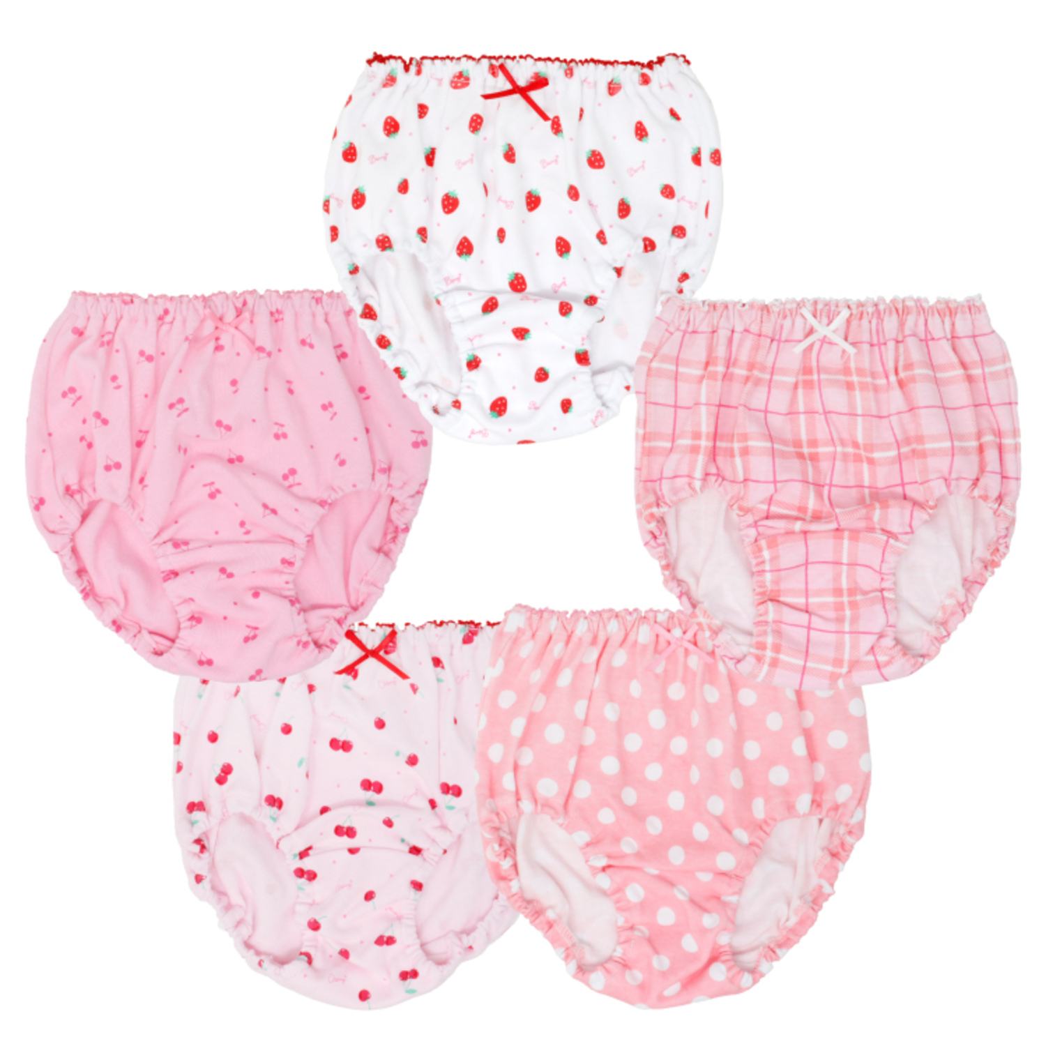 ―デザイン・スタイリング―・パッと目を惹くバックプリントが◎・スイートな色で揃えた、お得な5枚組セット・洗い替えに便利―素材―・柔らかな肌ざわりの綿100%素材―機能―・はき口 & 足口はインゴム仕様でやさしくフィット・内側にはお名前が記入できるネームタグ付き