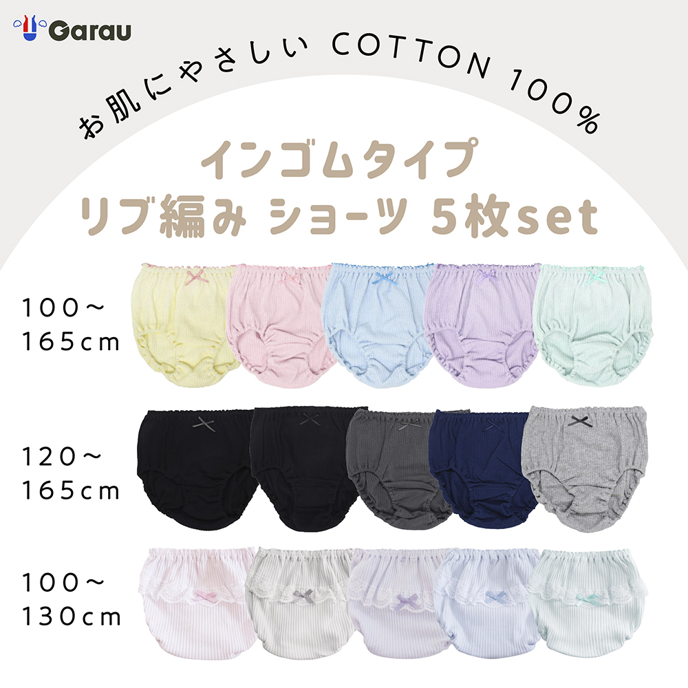 【ガロー/GARAU】ショーツ5色組 無地リブ【子供・ジュニア】