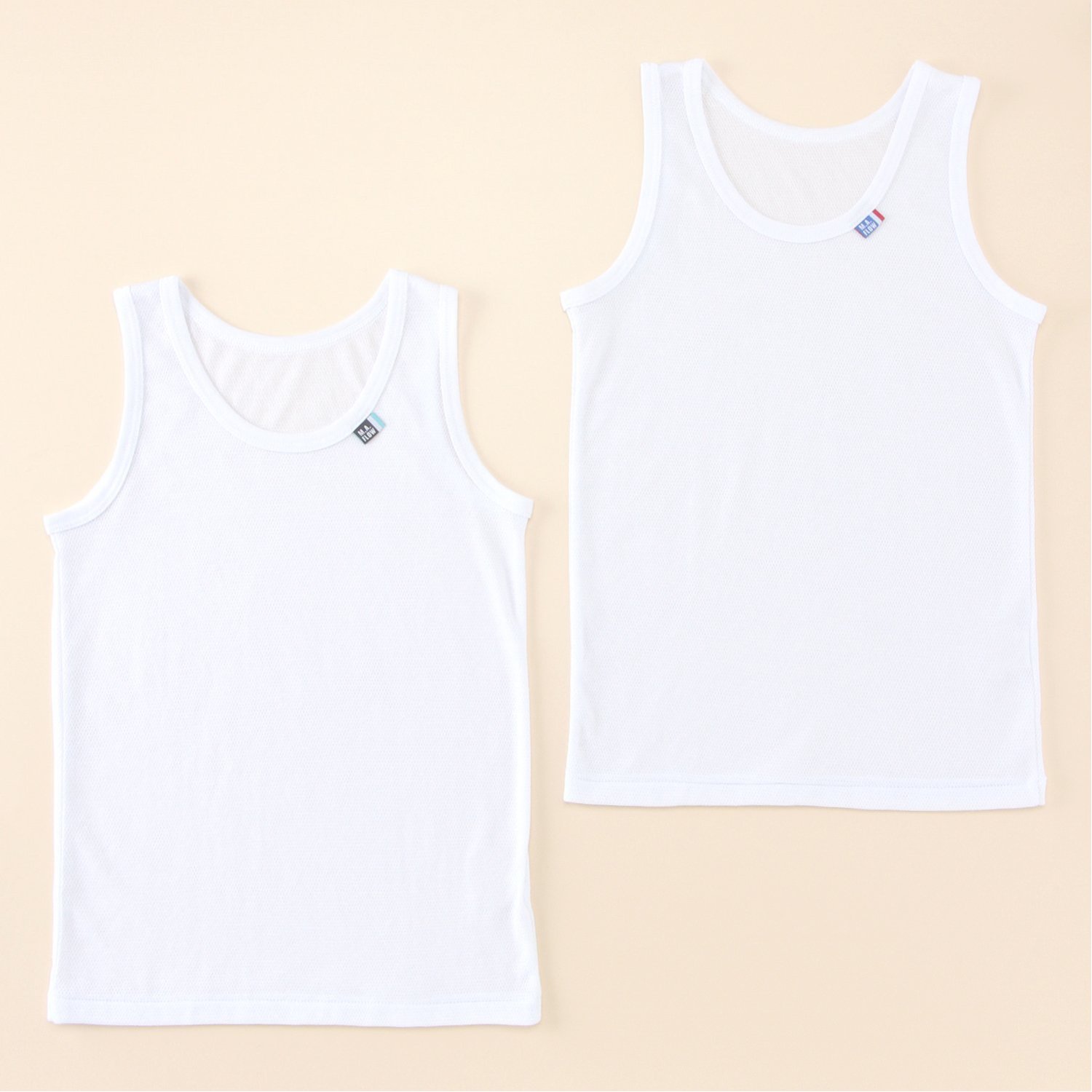 ―機能―・ムレにくく通気性のよいメッシュ生地・吸水速乾性があり、ドライな着心地をキープ・お名前が記入できる内側ラベル付き―デザイン・スタイリング―・デイリー使いに重宝するシンプルなタンクトップ・襟ぐりにあしらった織りネームがポイントに・洗い替えに便利なうれしい2枚組―素材―・ナチュラルな風合いの素材を使用