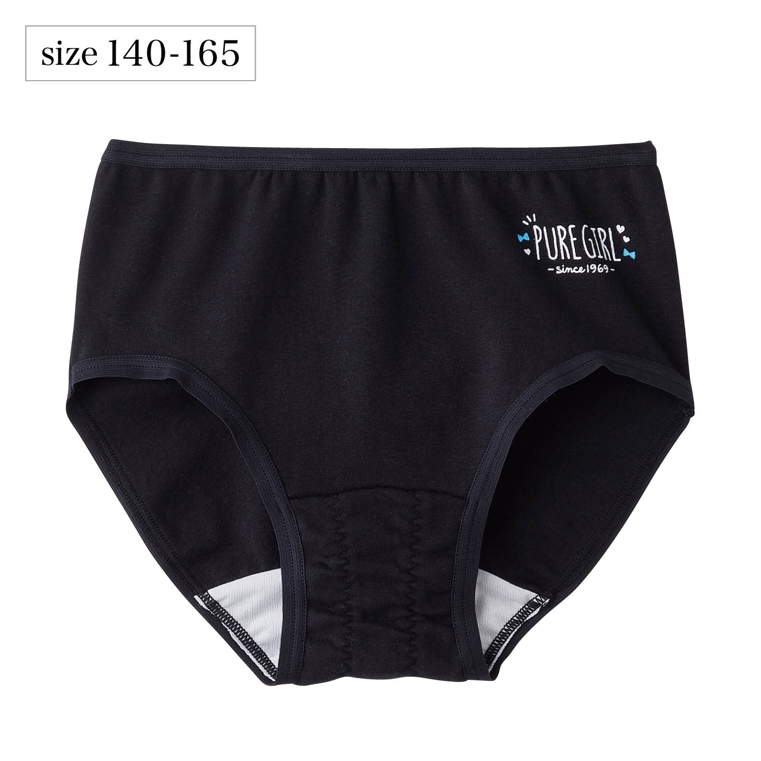 ・後側の特殊切替で体にしっかりフィット。スポーツ時に最適・マチ部分にはギャザー入り、ゴム内蔵。ナプキンをしっかり押さえモレを軽減・透湿性防水布だから蒸れにくく快適なはき心地・黒地にオシャレなロゴプリントがかわいい・安心の日本製・身生地はストレッチの効いた綿混素材で体にフィット