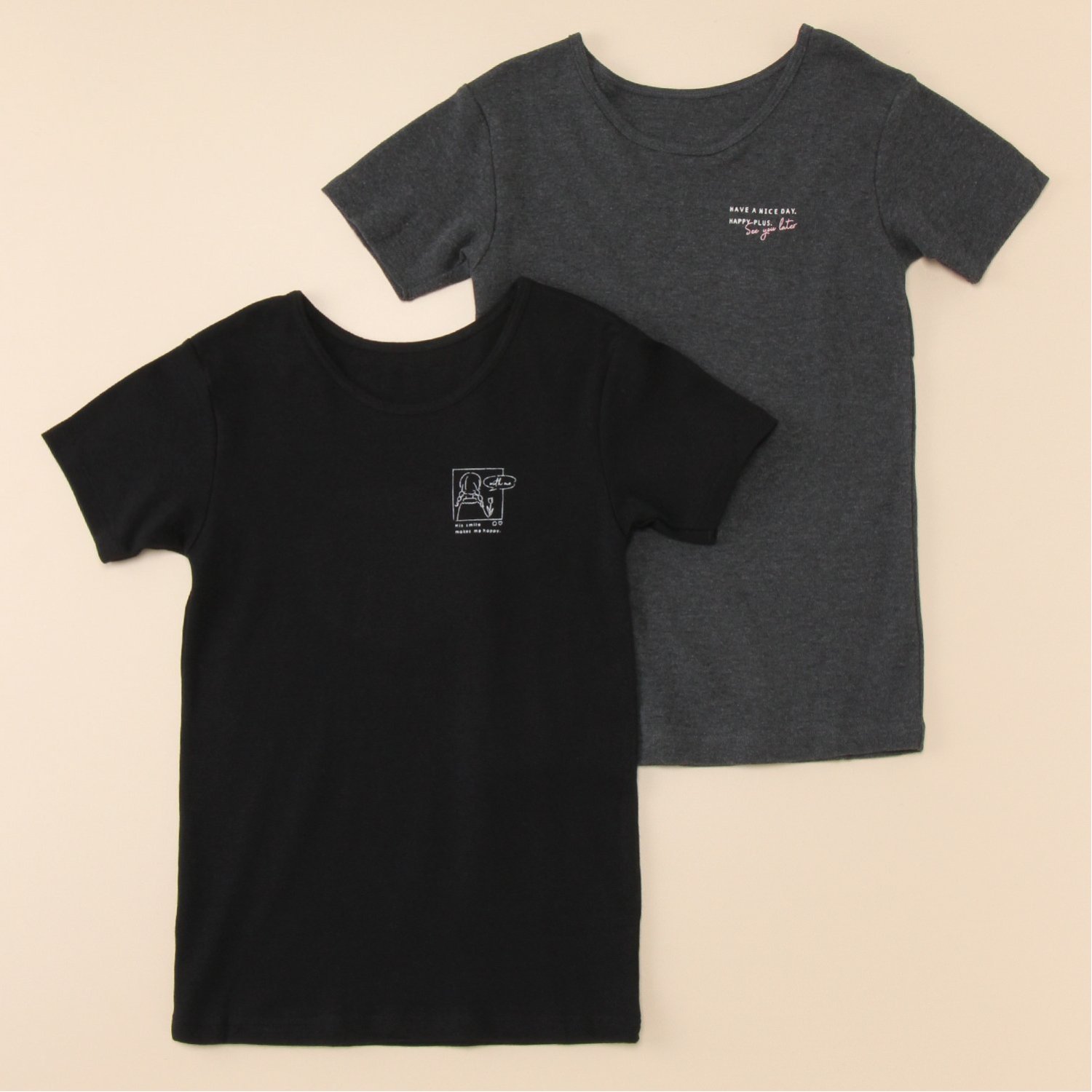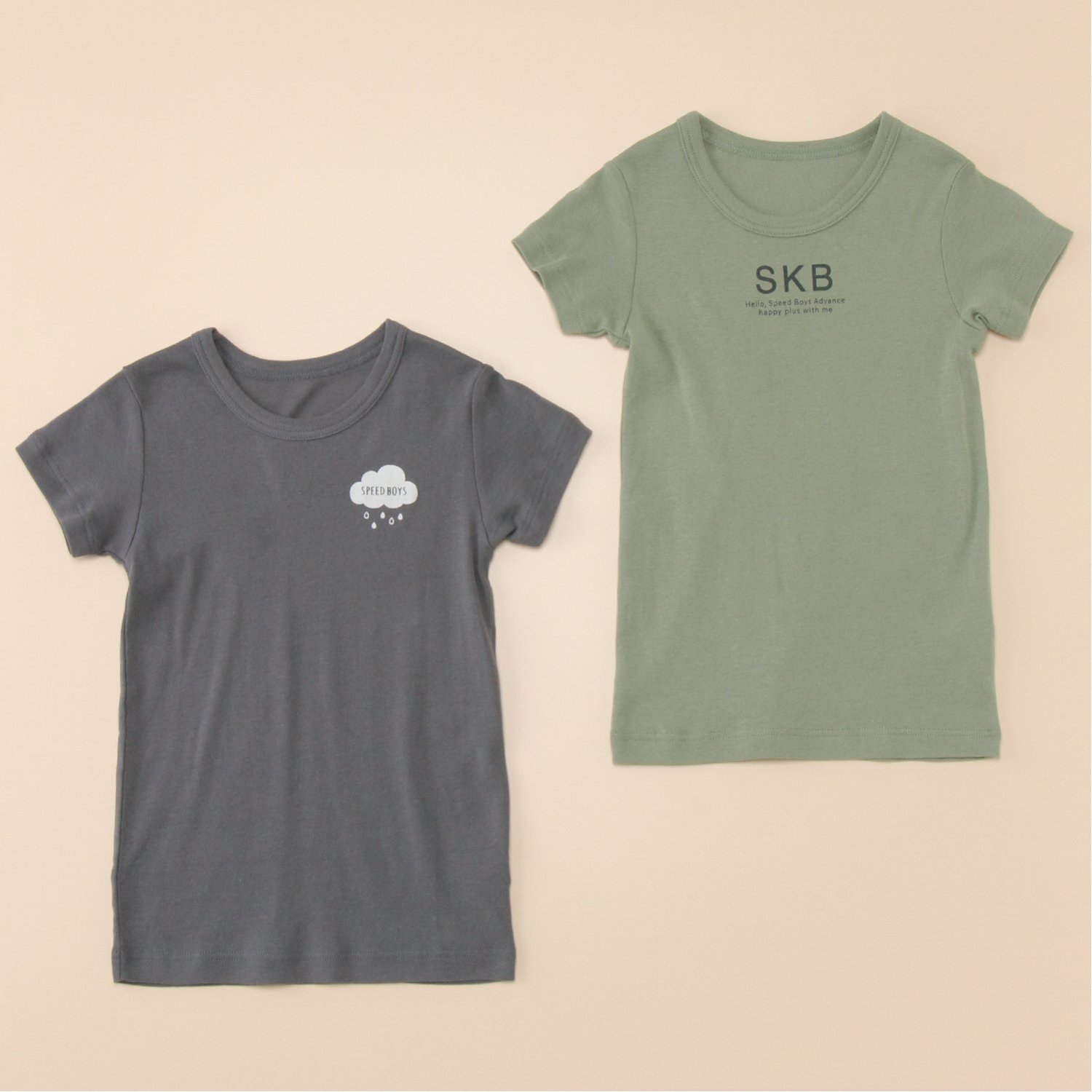 ―デザイン・スタイリング―・Tシャツでもインナーでも着られる半袖シャツ・モノトーンベースのシンプルなデザインが◎・左胸にはワンポイントになるプリント入り・洗い替えにうれしい、2枚組をご用意―素材―・やさしい肌ざわりの綿100%のスムース素材を使用―機能―・内側に紛失防止に役立つ、お名前が書けるタグ付き