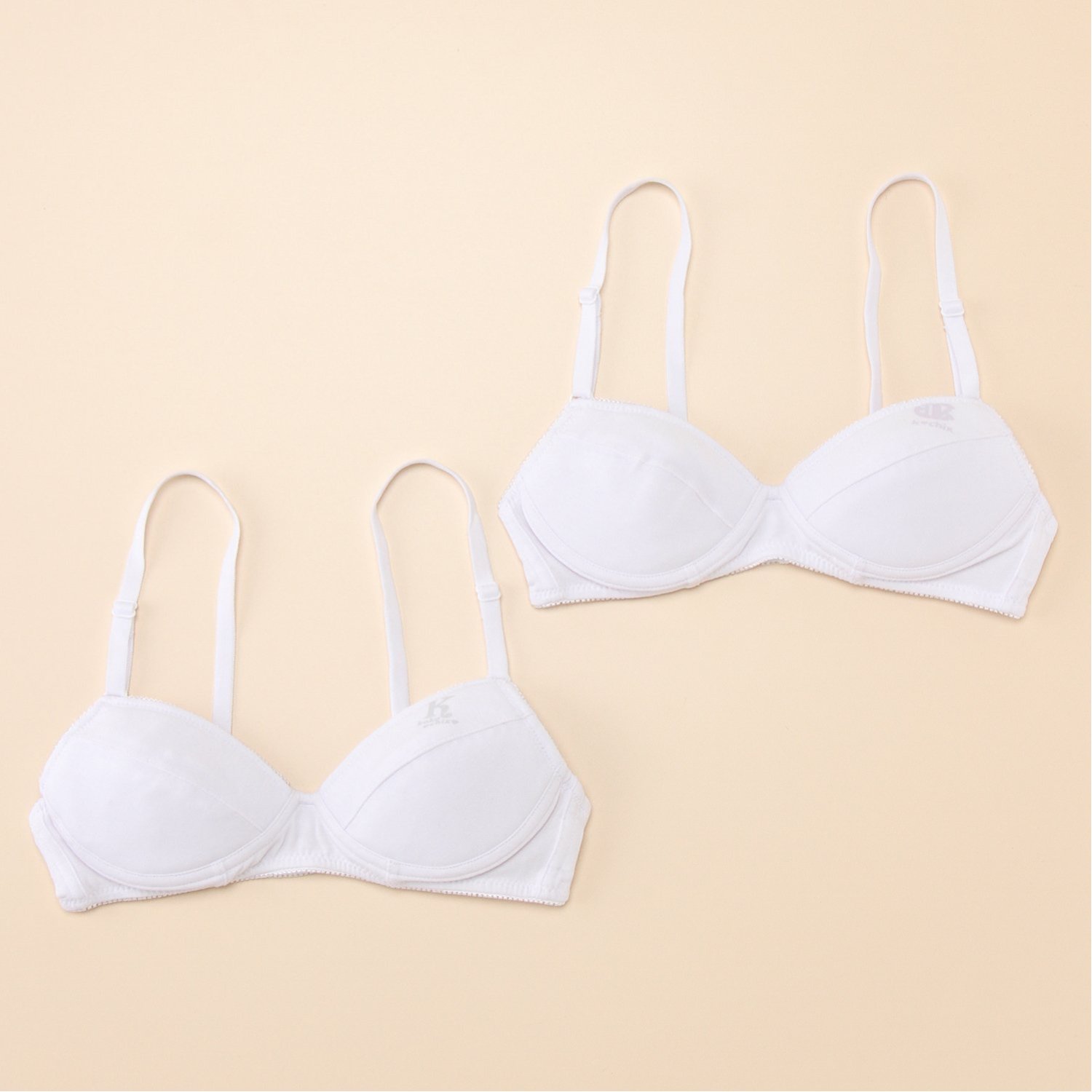 ―デザイン・スタイリング―・着脱が簡単なホックなしタイプのブラジャー・トップスに影響しにくいシンプルなデザイン・洗い替えに便利な2枚組をご用意―素材―・本体にはやさしい肌ざわりの綿混素材を使用―機能―・肩ひもはジャストな長さに調節可能・お名前が記入できるネームラベル付き