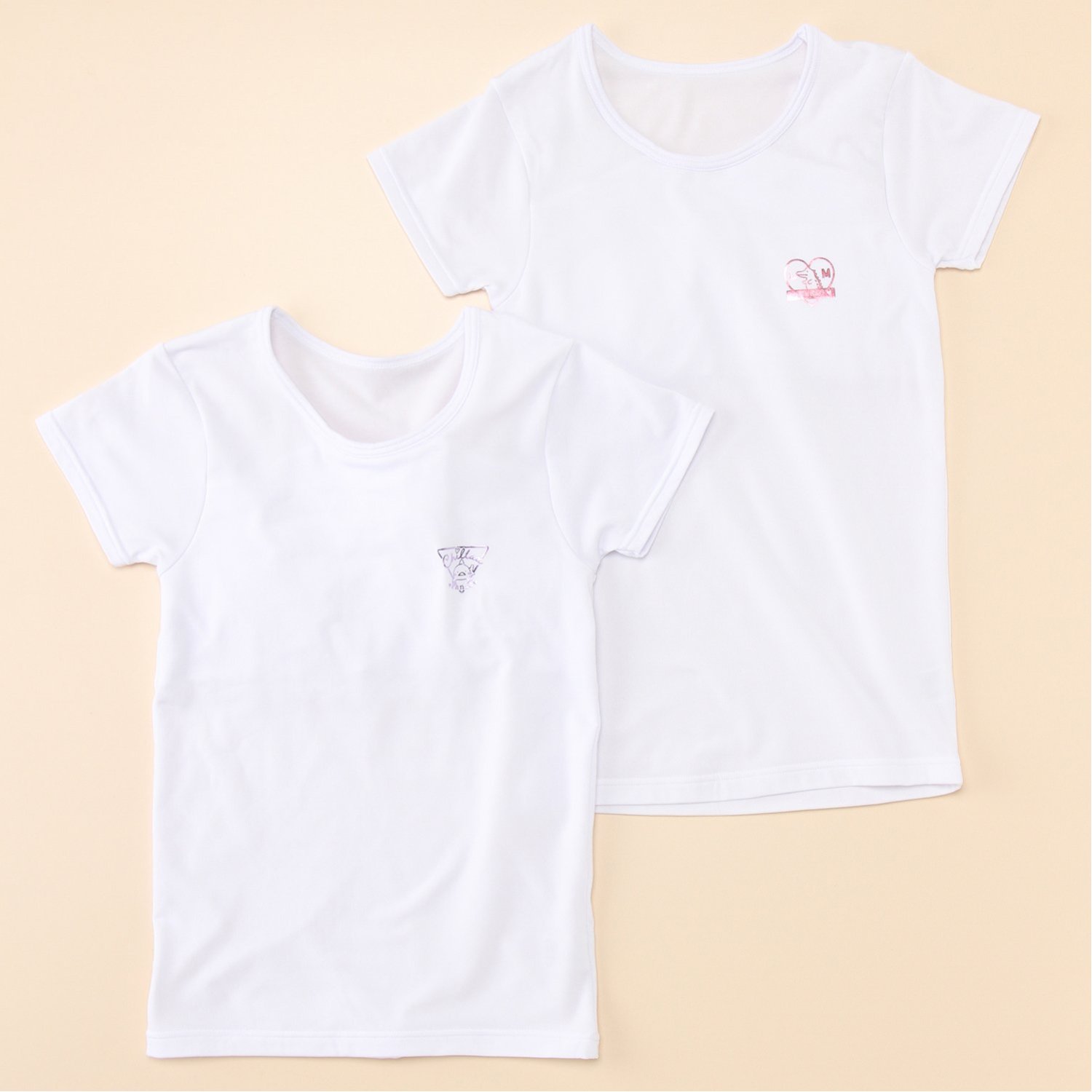―デザイン・スタイリング―・Tシャツのような感覚で着られるシンプルな1着・学校にもOKなベーシックカラー・左胸には愛らしいロゴプリント入り・洗い替えにうれしい2枚組をご用意―素材―・ふんわり柔らかな裏起毛仕立て・汗をかいても快適な着心地のドライ素材―機能―・成長に合わせて、パッドは取り外し可能・内側にお名前が記入できるネームタグ付き