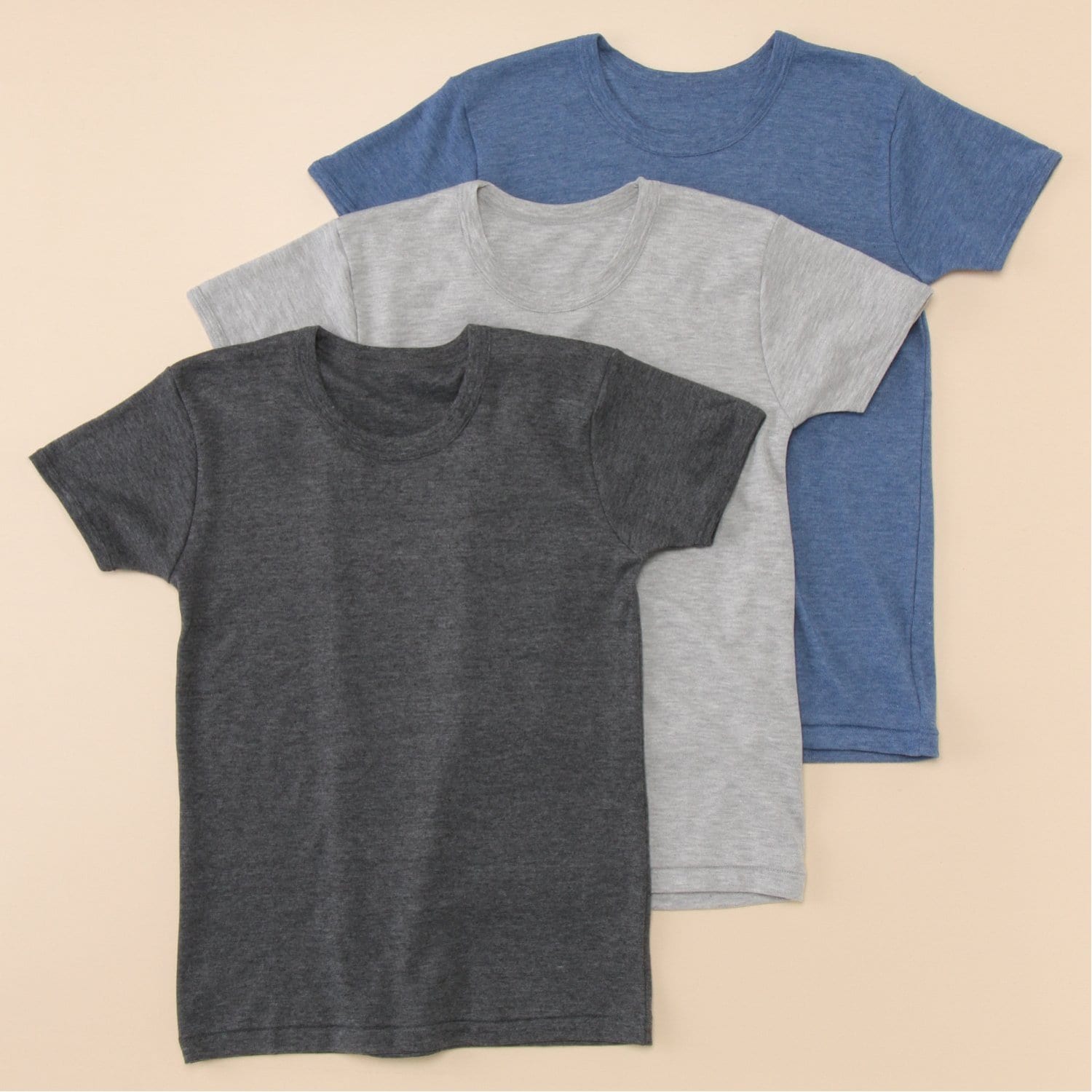 ―デザイン・スタイリング―・寒い季節にぴったりな厚地のインナー・ニュアンスのあるおしゃれな杢調カラー・洗い替えに便利な3枚組をご用意―素材―・ふんわりあたたかな綿混のスムース生地―機能―・紛失防止に役立つ、お名前が書けるネームタグ付き