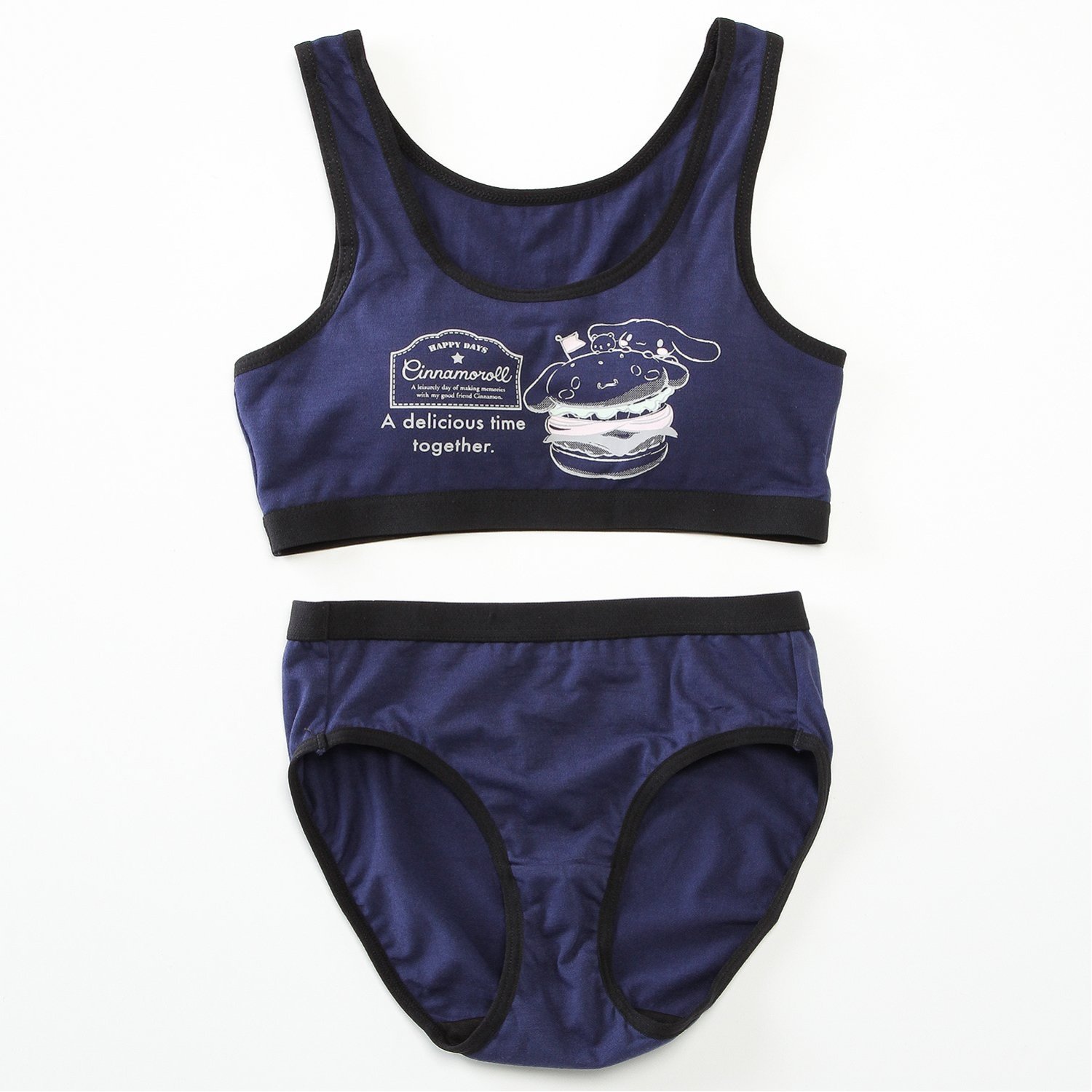 ―デザイン・スタイリング―・サンリオキャラクターのキュートなデザイン・程よくフィット & 締め付け感がないゴムテープ仕上げ・デイリー使いや、スポーツシーンで大活躍―素材―・身生地はソフトな風合いの綿混素材を使用―機能―・ハーフトップには取り外し可能なパッド付き