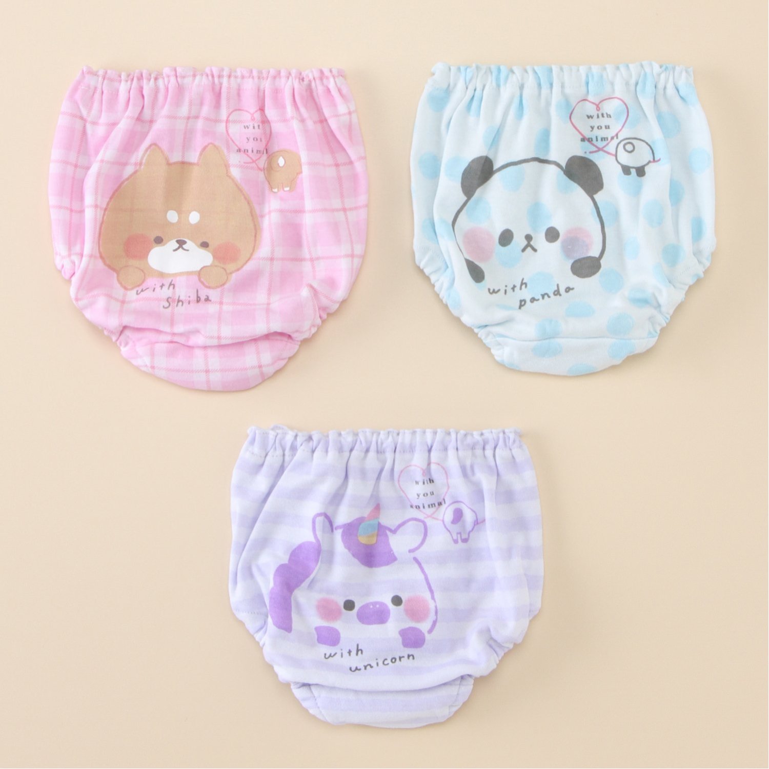 ―デザイン・スタイリング―・愛らしいアニマルキャラクターのバックプリント・ベース柄と動物の組み合わせがとってもキュート・ローテーションで楽しめる3枚組をご用意―素材―・柔らかな肌ざわりの綿100%素材―機能―・はき口 & 足口はインゴム仕様でやさしくフィット・内側にはお名前が記入できるネームタグ付き