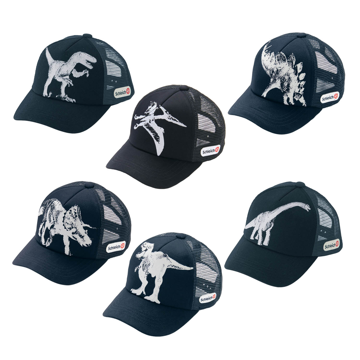 ―デザイン・スタイリング―・日本で初展開のシュライヒメッシュキャップ・光が当たると浮き上がる再帰反射の恐竜プリントがかっこいい・ベルメゾンネットだけ!オリジナル缶バッジ付き―機能―・後ろはメッシュ素材で通気性も◎・頭まわりのサイズを調節可能