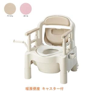 安寿 ポータブルトイレ FX-CP“ちびくまくん” 暖房便座 キャスター付 870-024 870-122 アロン化成 (ポータブルトイレ 肘付き椅子 暖房便座) 介護用品