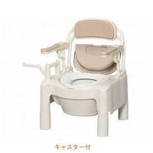 安寿 ポータブルトイレ FX-CPはねあげ “はねあげちびくまくん” キャスター付 870-074 アロン化成 (ポータブルトイレ 肘付き椅子 プラスチック 椅子)