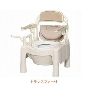 安寿 ポータブルトイレ FX-CPはねあげ “はねあげちびくまくん” トランスファー付 870-072 アロン化成 (肘付き椅子 プラスチック 椅子 スライドボード)