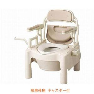 安寿 ポータブルトイレFX-CPはねあげ “はねあげちびくまくん” 暖房便座 キャスター付 870-094 アロン化成 (ポータブルトイレ 肘付き椅子) 介護用品
