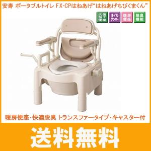 安寿 ポータブルトイレ FX-CPはねあげ “はねあげちびくまくん” 暖房便座・快適脱臭 トランスファータイプ・キャスター付 870-116 アロン化成 介護用品