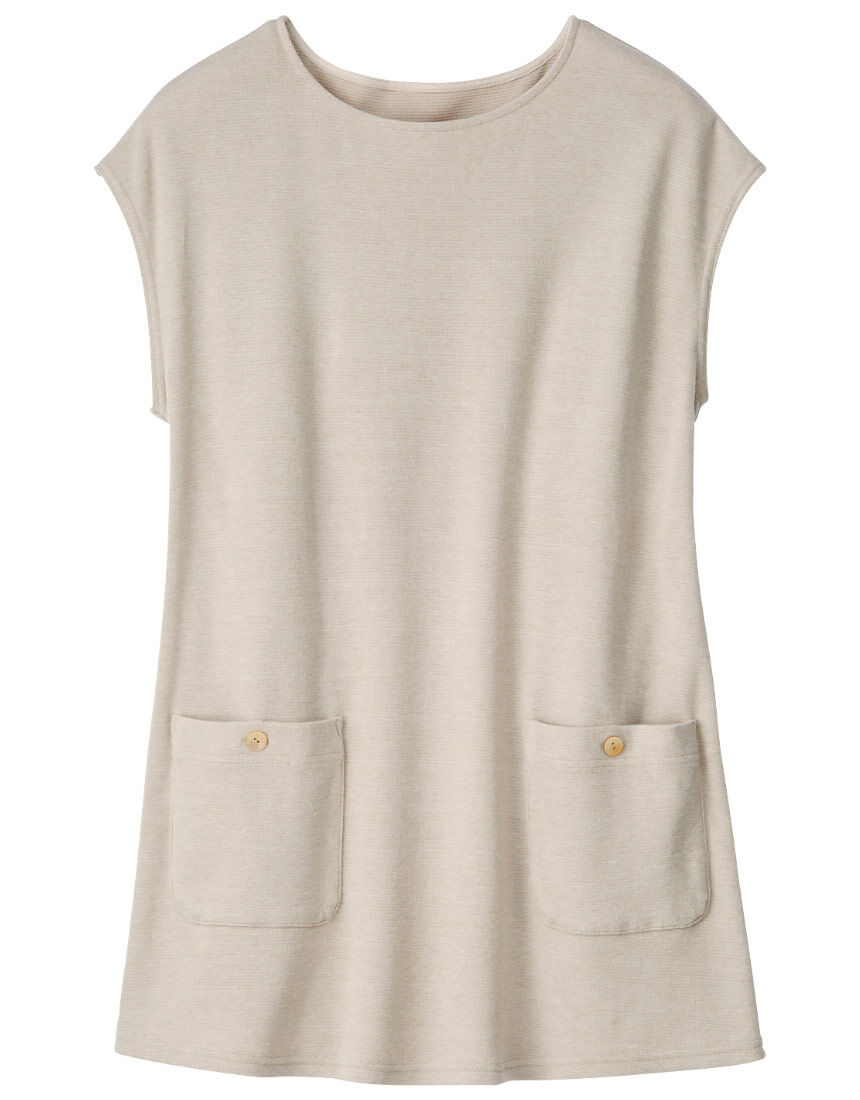 ゆったり重ね着して肩を包みあったかふわりとかろやかな微起毛のカットソー素材。ストンとかぶれ合わせやすいシンプルなデザインです。LOVE BODY 2023冬号ゆららP14-4に掲載されています。