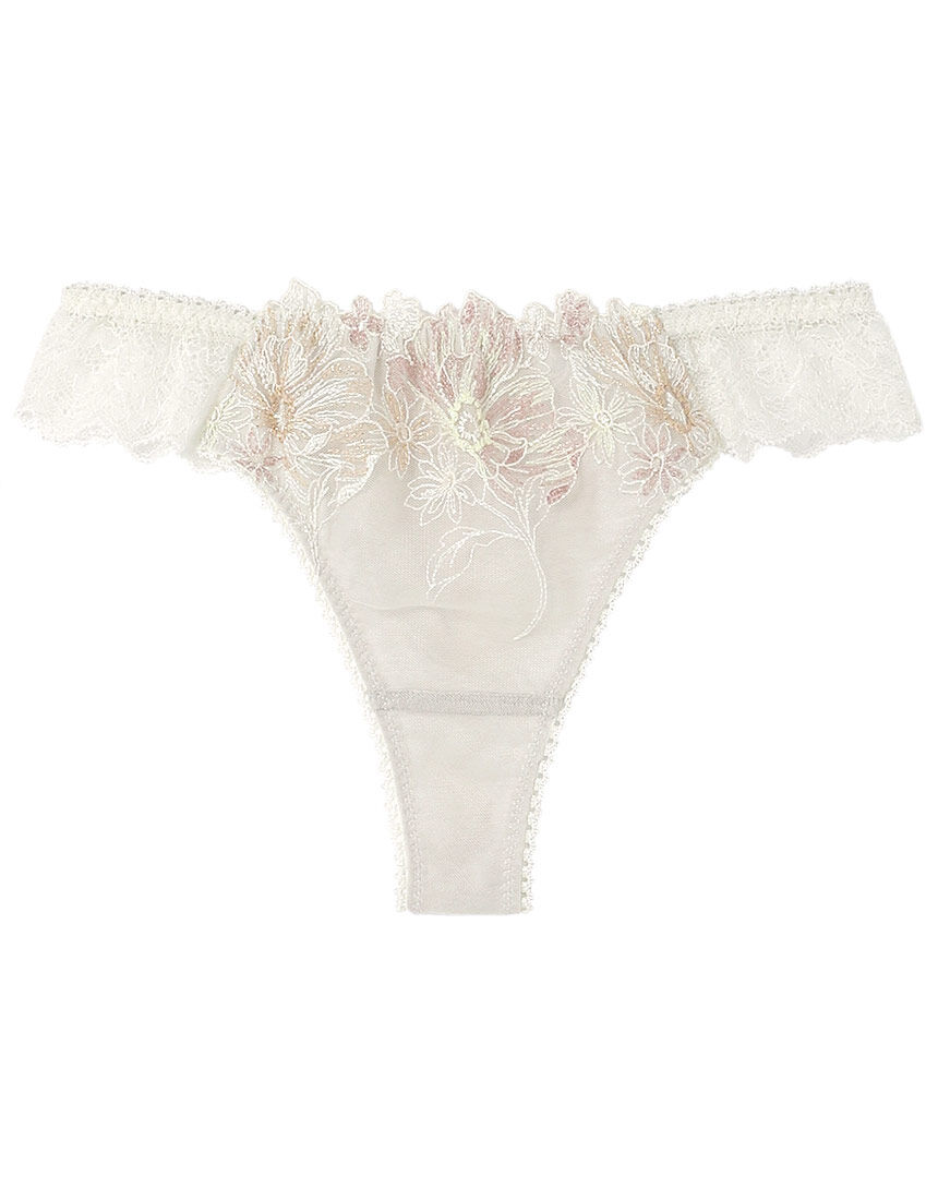 華やかなムードを感じるグループ。きらめくラメ糸を使ったロマンティックなフラワーブーケをイメージしたレースをあしらいました。・ピンクベージュにブラウンの刺しゅうが新鮮なカラー【BRカラー】・うっすら色づくニュアンスアイボリーカラー【IVカラー】・シックな印象に着こなせるグレイッシュなカーキカラー【KAカラー】のカラー展開。●フロントに繊細なエンブロイダリーレースをほどこしたソング。●バックはストレッチレースをほどこし、くいこみにくく、アウターにひびきにくいです。
