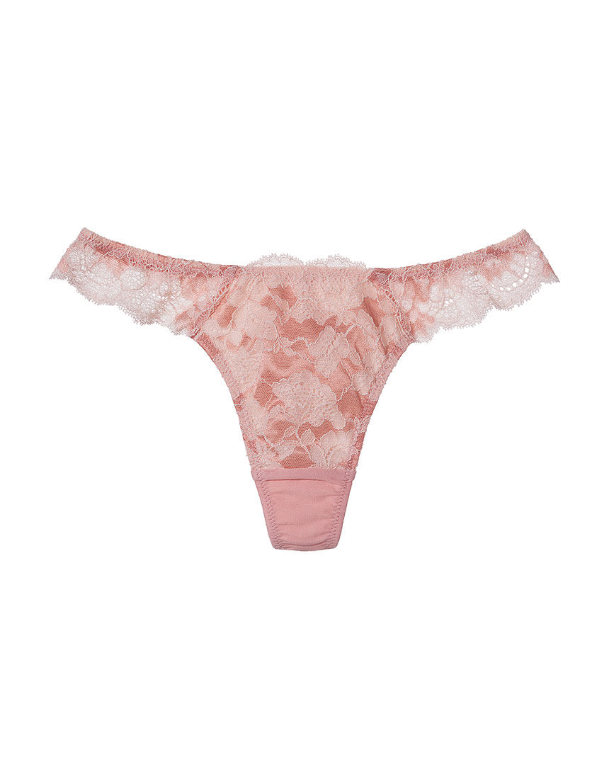 フロントはリッチな柄行きのストレッチレースにコットン混生地を裏打ち。サイドはレース1枚使いで美しく肌を透かします。クロッチ部からバックにかけてはふわっと優しいタッチのストレッチ生地。後ろウエスト・バックパネルのふちはゴムをくるんだ仕様で肌当たり柔らかです。