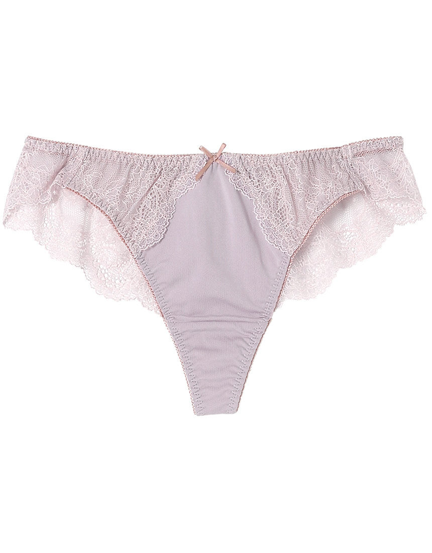 繊細な柄表現のラッセルレースを贅沢にほどこしたグループ。フェミニンな中に洗練された大人の雰囲気をあわせ持ったデザインです。サイドからバックにかけて繊細な柄のラッセルレースをあしらったソング。通常のソングよりも後ろ身頃の面積が広いので、ソング初心者の方にもはきやすいデザインです。バックはストレッチレースをほどこし、くいこみにくく、アウターにひびきにくいです。