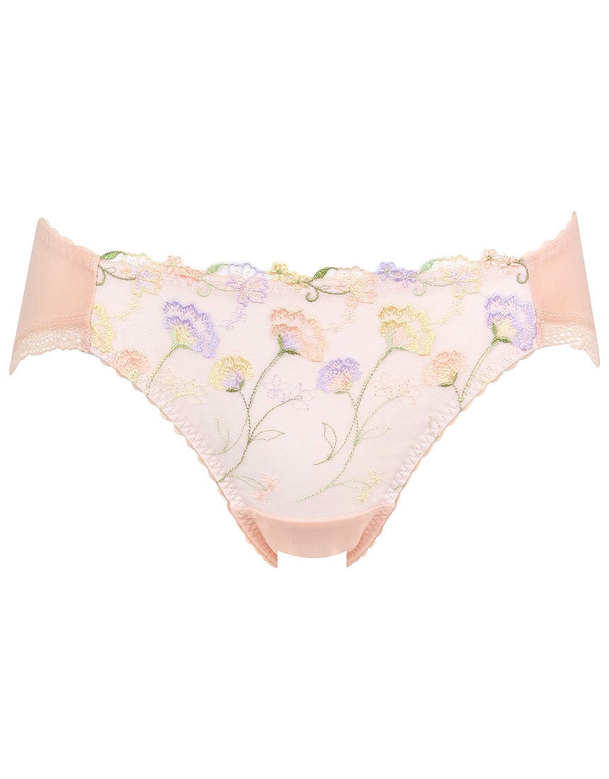 ・本体は綿混素材を使用・ヴェールをまとったような光に佇む花のシルエットを空間を活用した構成で表現した、グレード感のあるデザイン・カラーによりプリントの手法を変え、イメージを変化(GBカラーとPIカラーは、ラメ糸部分のみプリント。OBカラーはプリントなし)・はきこみ丈:ふつうショーツの種類(ウエスト位置、裾ライン位置)についてはこちら をご覧ください。