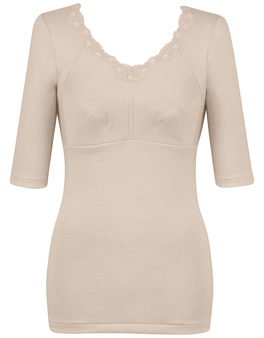 「綿の贅沢 オーガニック」やわらかく、やさしい肌ざわりのあたたかなオーガニックコットン混のカップ付きインナー●やさしい肌ざわり 身生地部は肌側オーガニックコットン100%の伸びやかな綿混素材●ムレにくく、あたたかで快適 身生地部は保温性、吸湿発熱性、吸放湿性のある素材●静電気が起こりにくい 身生地部はパチパチしにくい素材を使用●抗菌防臭加工 身生地部は抗菌防臭加工をほどこした素材を使用●ブラいらずでラクな着ごこち バストにほどよくフィットするカップ付きインナー●生乾き臭制菌性 生乾きのいやなにおいの原因菌の増殖を抑制●こだわりの綿 希少価値の高い超長綿を使用・カップ付き5分袖インナー直接肌に触れるものだから、あったかインナーはやっぱり肌ざわりのよさで選びたいという方におすすめ。身生地部の肌側をオーガニックコットン100%で仕上げた、ストレッチ性のあるやわらかな綿混素材に、あったかインナーに求められる快適機能を詰めこみました。吸湿発熱性のあるムレにくくあたたかな素材。静電気が起こりにくいパチパチしにくい素材を使用。さらに抗菌防臭加工をほどこし、生乾き臭制菌性も備えているので、生乾きのいやなにおいの原因菌の増殖を抑制してくれます。カップ付きだからブラいらずでらくちん。Vネックにレースをあしらい、ほんのりフェミニンな表情に仕上げました。実際の商品をご覧いただける取扱店舗はこちらからご確認いただけます。※店舗によっては、取扱のない商品(サイズ/カラー)もあります。詳しくは、店舗にご確認ください。