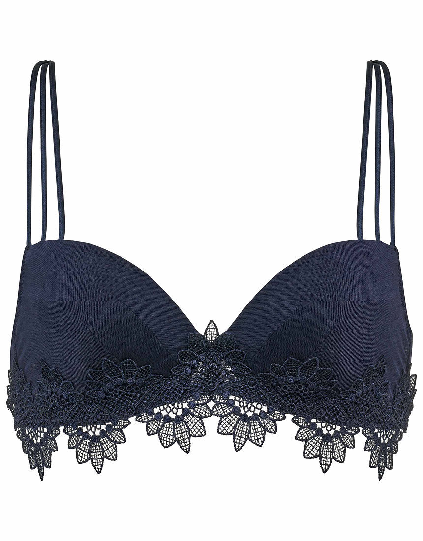 どこまでも見渡せる水平線と白く幻想的な砂浜。夕暮れの空と穏やかに打ち寄せる波の音に癒される、サンセットビーチを思わせるコレクションです。ヤシの木風のレースやアップリケ、華奢なループ使いは遊び心満載。やわらかなチュールネットも軽やかさを際立たせます。海辺に映えるアクティブウェアをイメージしたデザインで、アウターライクなカラー展開もより一層リゾート気分を盛り上げてくれそう。「Yue」のコレクションはLOOKBOOKでもご覧になれます。優美なアップリケがバスト下で連なる遊び心のあるデザイン・バージスライン(バストの底辺)に合いやすいワイヤーを使用し、脇寄せと自然な持ち上げ機能で谷間を美しくメイク ・手ざわりのよさややわらかい伸びにこだわった素材使いと計算された設計により、肌に軽く気持ちよくフィットしてからだのラインを美しくととのえるブラジャー・バック上辺は折り返し始末で段差を軽減し、やわらかなつけごこち・3本使いのストラップやバック部分にテープとアップリケをあしらった、遊び心あるデザインがポイント ・縫い目が表に出ない仕様の肌ざわりがソフトなホックを使用