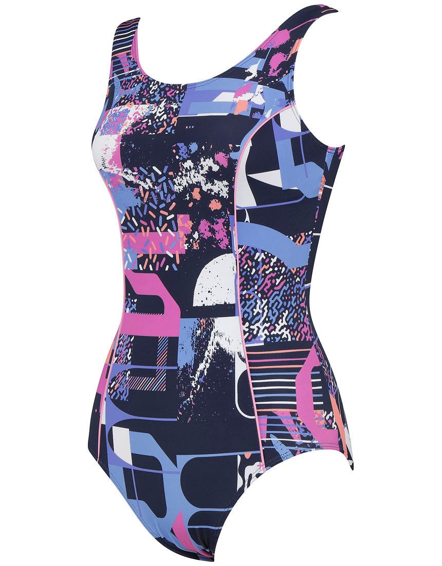 ワンピース体型カバー部位|おなか|せなか|ヒップ|【柄・デザイン】機械の回路を思わせる近未来的な幾何学模様のストラクチャージオ柄(VI・GB)文字と手描きタッチの花を組み合わせた新鮮なカリグラフィー&フラワー柄(BL・LB)【特徴】●美キープカップ:バストを面で支えてずれにくい。動きに合わせて伸縮するアンダーバストテープでずれ上がりにくい。●プリンセスライン:水着に入った縦の切り替え線で、ウエストを細く見せる。お店から 水中で動いてもバスト部分がズレにくく、バストの形を美しくキープしてくれる水着。ワコール独自のシェイプ機能でボディラインを美しくサポートしてくれるうえに、水着の縦に入ったプリンセスラインでウエストが細く見えるデザイン!※「シェイプ」とは、水着の補整効果によりボディラインをととのえる事を表します。