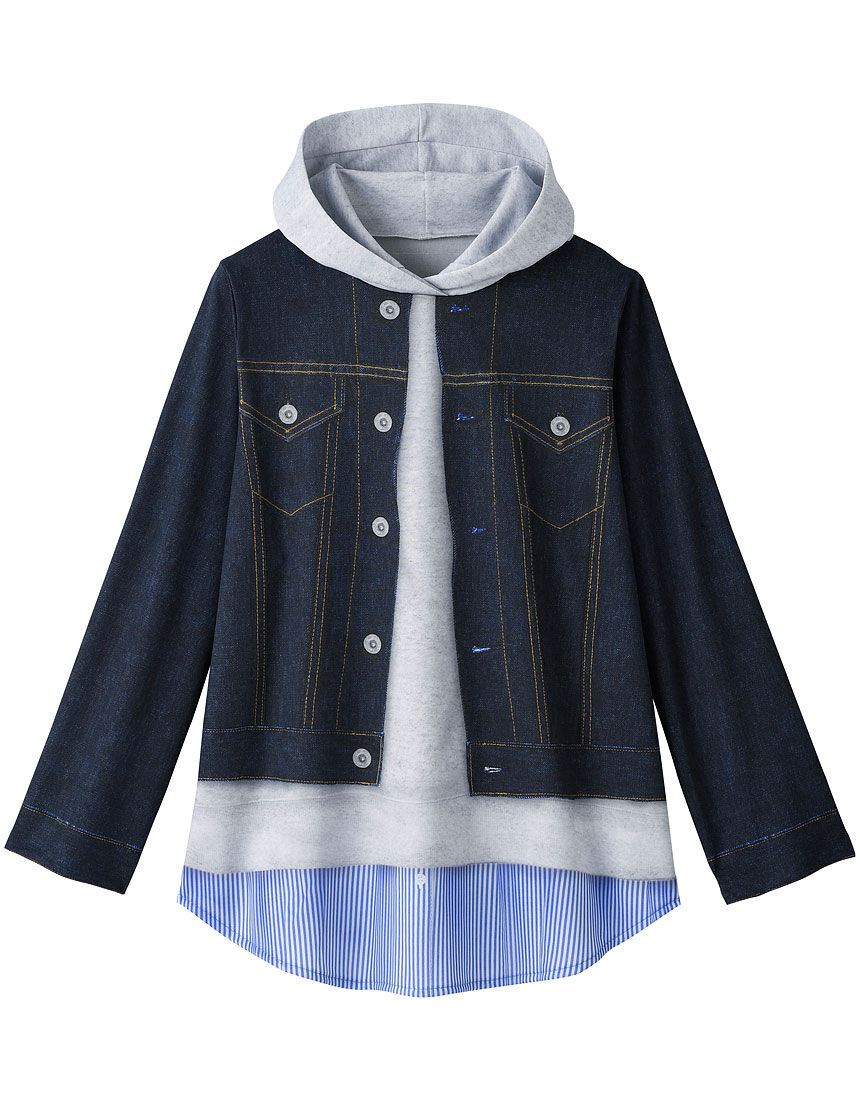 トップスフード付き・長袖・大人の体型を考え、体型をカバーをしてくれる設計のカジュアルTシャツ、「Tブラウス」・デコルテが隠れるネックライン・アームホールはゆとりを持たせた設計で動きも快適・裾広がりのAラインシルエット・重ね着風のパネルプリント柄、フード付き・袖口折り返し仕様・裾は前身頃をインできるラウンドデザイン・ヒップが隠れる丈設定【サイズ詳細】※身長154?162cmに対応しています。M?L:バスト108.0cm、肩幅37.0cm、着丈72.0cm、袖丈57.0cm※着丈は後中心丈です。※出来上がり寸法を表示しております。※サイズ詳細の寸法には多少の差異がございます。出来上がり寸法の測り方についてはこちら