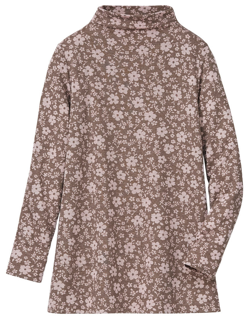 綿混カットソーのしなやかチュニック首もとを包むボトルネックで1枚でも品よく着映えする小花柄。コートなどのインにすっきり着られるやや薄手です。LOVE BODY 2023冬号 P33-2に掲載されています。