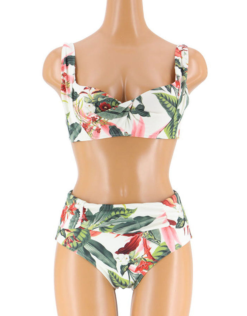 ●ダブルアップブラ水着ノンワイヤーなのに、ぷっくり丸胸をつくれるダブルアップブラ。ワコール独自のバストメイク機能により、浮きや脇流れをおさえ、締めつけなく美胸をキープします。ワコール共同開発のダブルアップブラ!自然の恵みをたっぷり感じるボタニカル柄。ノンワイヤーなのにぷっくり綺麗な胸になり、着けごこちも苦しくないのが嬉しい!肩に食い込みにくい太めのストラップは、脇をしっかりホールド。脇のお肉をカバーしながら、バストを優しく包みこむデザインになっています。ショーツはウエスト折返しの為、段差になりにくいのもポイント!折り返しを伸ばして着用することも可能です。綺麗にカバーしてくれる大人ビキニはパレオやボトムとあわせて、お好みのコーディネートを楽しんでいただけます。・ノンワイヤー【水着と合わせての着用がおすすめ】 アンダーショーツ&水着用パッド「こちら」