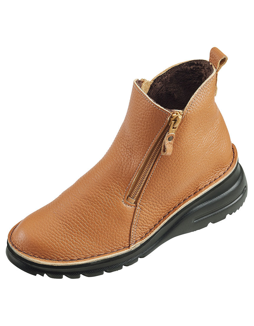 LOVE BODYセレクション Lui e lei毛足の長いふんわり裏ボアで足もとにぬくもり脱ぎ履きしやすい4Eのショートブーツ足なじみのよいソフトな牛革。カジュアルなアクセントを兼ねたダブルファスナー仕様です。LOVE BODY 2023冬号 P21-1に掲載されています。
