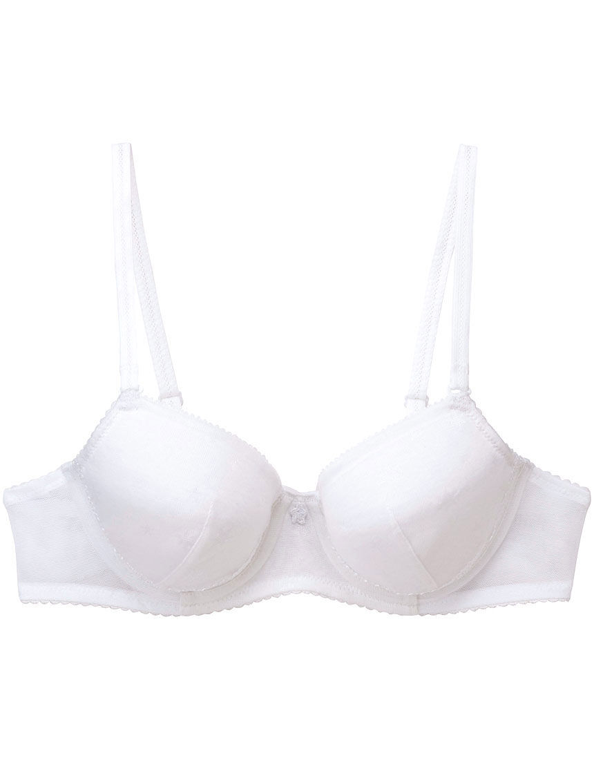 【STEP3】 オーガニックコットンプレミアム混素材使用 U字樹脂ワイヤー 3/4カップ、後ろホック、ストラップ(調節あり)バストがおとなのように丸くなってきたらつけるブラ小学生や中学生にオススメのジュニアブラ・やわらかい樹脂ワイヤーがバストに沿うようにフィットしてやさしくサポートしてくれる。・カップ表生地には、希少価値の高いオーガニック超長綿の吸汗速乾性にすぐれた綿混ジャカードを使用。・軽い手持ち感とやさしい風合いの清涼生地にシルケット加工し、生地に安定性を持たせました。・カップ裏打ちにやさしくささえる肌ざわりのよい不織布を使用。・肌側には肌ざわりのよいメッシュ素材を使用。・バストのバージス部分にメッシュテープを使用しています。・ストラップを取り替えてアレンジ可能タイプ。注:ストラップレスでは着用できません。・星柄*この商品は、綿花栽培時の農薬や化学肥料の使用削減を通して、環境保護や生産者の方の健康に配慮したオーガニック超長綿を使用しています。