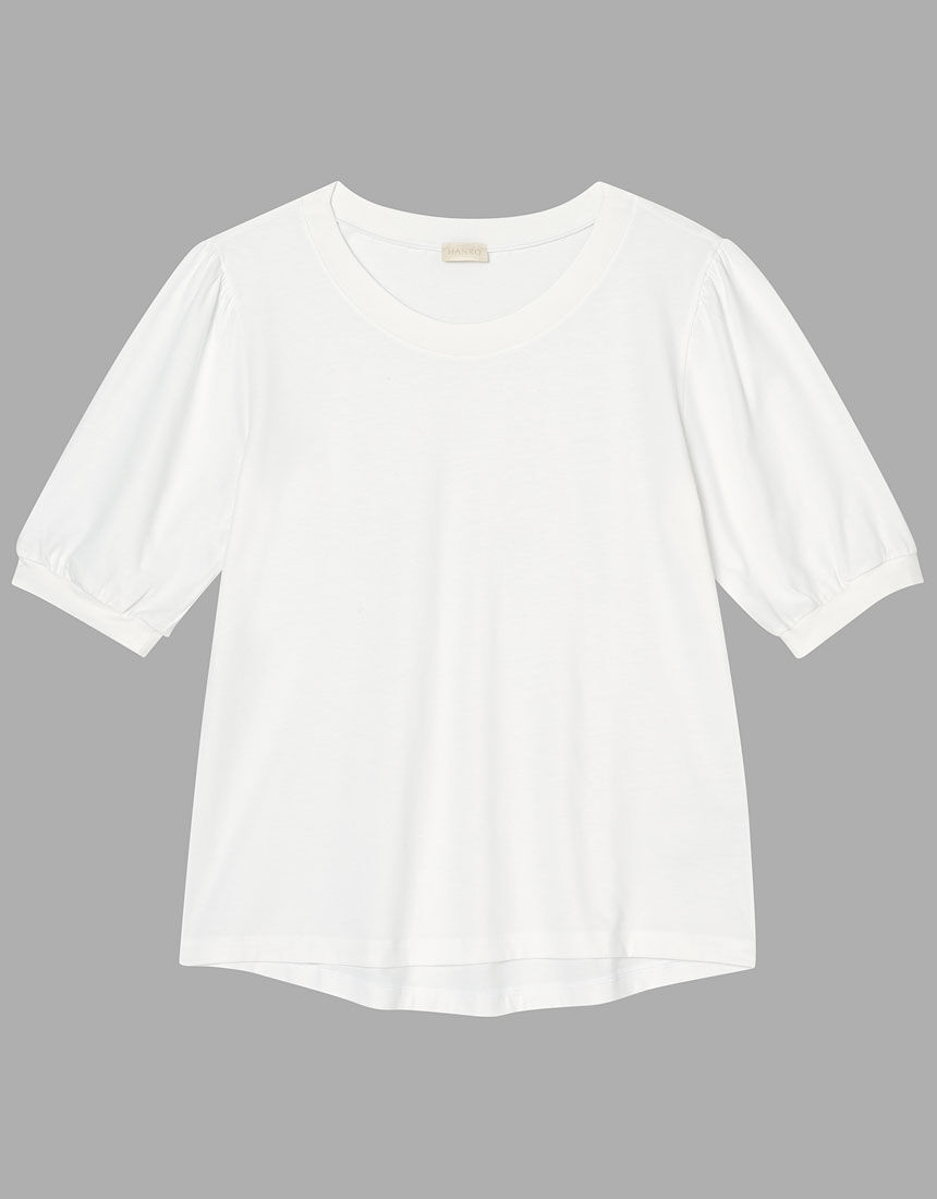 上質でやわらかなオーガニックコットン100%の天竺素材を使用。少しギャザーの入ったパフスリーブがデザインのポイント。同じ素材のLIH210よりも首まわりが広いので、よりゆったりと着用したい方におすすめです。※掲載サイズは輸入元サイズです。必ず、ページ内に掲載しているサイズ表をご確認ください。