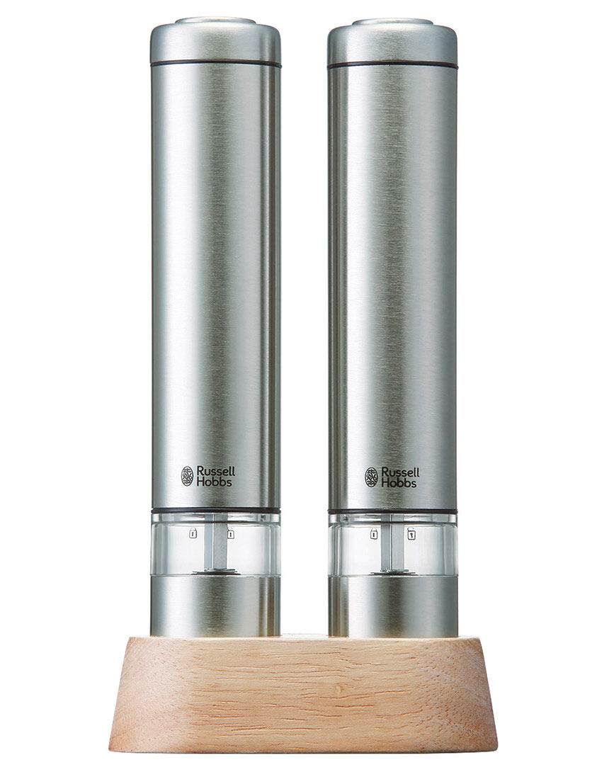 LOVE BODYセレクション Russell Hobbs(ラッセルホブス)片手で押せば塩や胡椒が挽ける電動ミル調理中はもちろん食卓でも扱いやすいハンディサイズで、スタンド付。2?6mmの粒に使えて、好みに合わせた挽き方に調節できます。LOVE BODY 2023冬号ゆららP24-5に掲載されています。