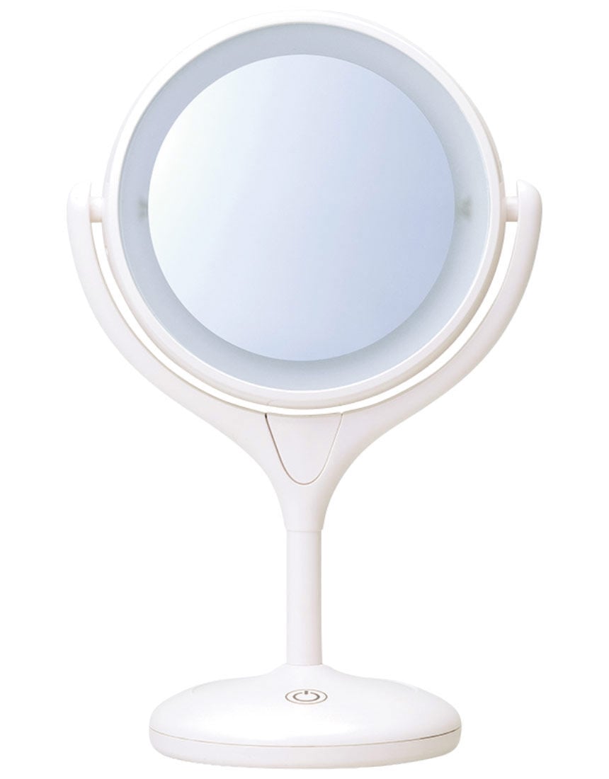 LOVE BODYセレクション 拡大鏡が便利なライト付両面ミラー普段は鏡として使用し、目もとのメイク時などは10倍の拡大鏡で細部まで見ることができる両面仕様です。無段階調光のLEDライト付なので見やすい自然な明るさでメイクできます。USB電源でも使えます。LOVE BODY 2023冬号暮らしのアイデア雑貨チラシに掲載されています。