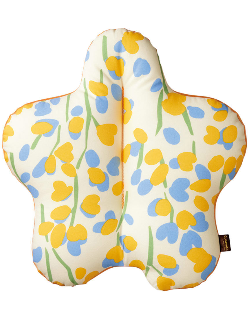 LOVE BODYセレクション CubeadsR(キュービーズ)包み込むようにやさしくフィットするクッション表は伸びない綿100%のフラワー柄の生地で裏は伸びるニット素材。椅子の背もたれに置き両端を左右に、キュッキュッと引っぱると中材のビーズが椅子とからだの隙間を埋めるように移動。手を放すとニットが縮んで腰を左右からホールドし、座り姿勢が安定します。LOVE BODY 2023冬号暮らしのアイデア雑貨チラシに掲載されています。
