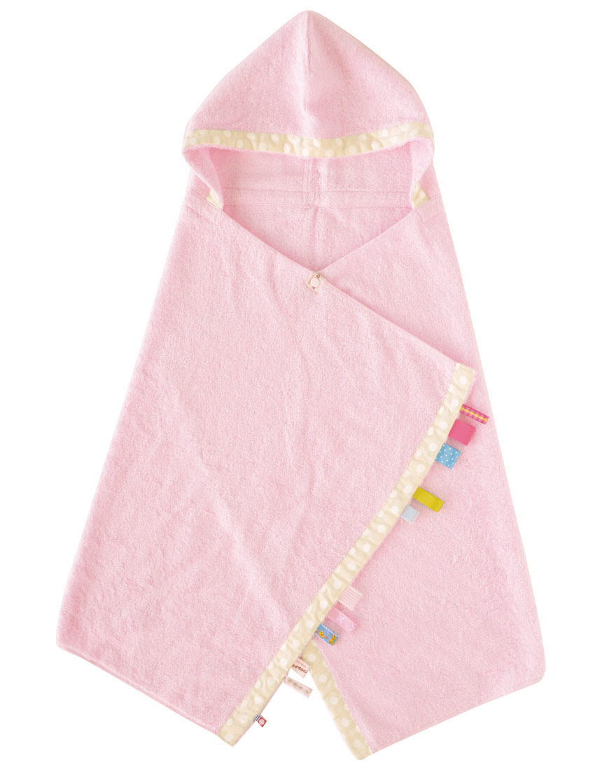 LOVE BODYセレクション crescendo (クレシェンド)タグをにぎにぎして遊べるフード付タオル頭まですっぽりかぶれる、やわらかな今治タオルのおくるみに、手ざわりが楽しいタグをいっぱい付けました。LOVE BODY 2023冬号ギフトチラシに掲載されています。