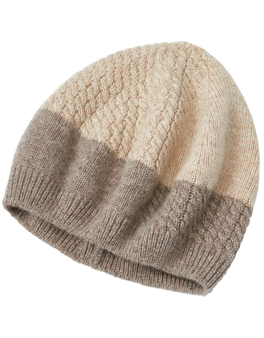 LOVE BODYセレクション Les Belles Modes(ベルモード)ベレー風にゆったりかぶれるニットワッチ細いケーブル編のアクセントと品のよいツートンカラーが大人を素敵に見せるデザインです。LOVE BODY 2023冬号 P20-4に掲載されています。