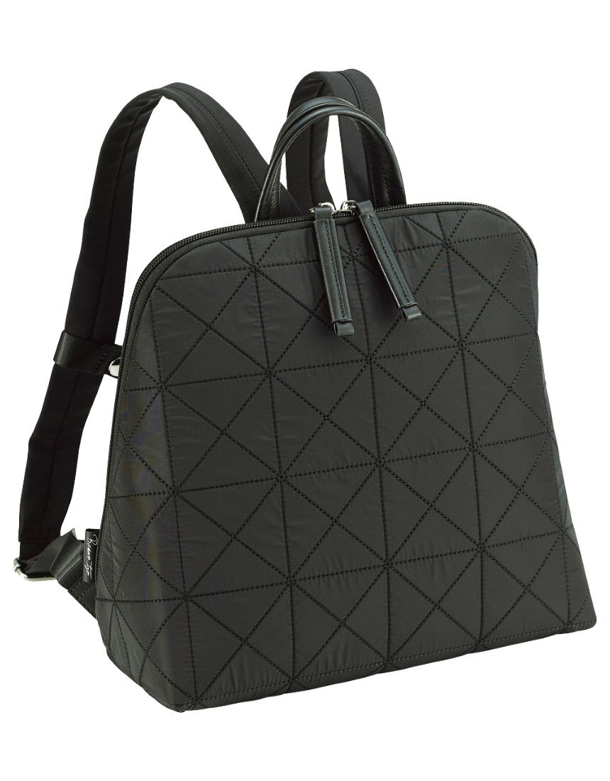 LOVE BODYセレクション BASARA TYO機能的でおしゃれなかろやかリュック幾何柄ステッチが個性的。ファスナー仕様や長めの引手など端正なフォルムの細部に使いやすい工夫をこらしています。LOVE BODY 2023冬号ゆららP8-3に掲載されています。