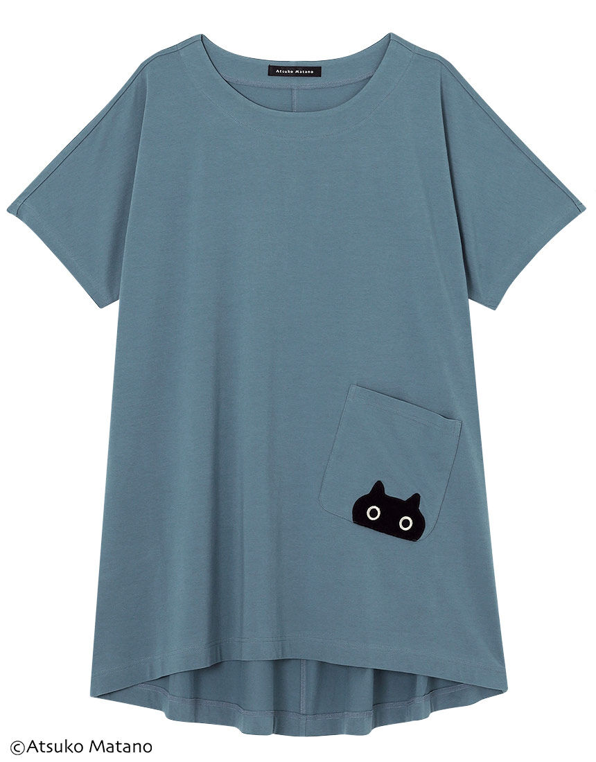 【トップス(5分袖)】クリエーター"俣野温子"氏がデザインする、甘くなりすぎない大人かわいいテキスタイルとカラーで、くつろぎ時間を楽しく過ごせるパジャマ&ルームウェア風合いのよい綿混ベア天竺素材。ゆったりとしたチュニック丈のTシャツはコーディネイトに活躍する一着。ポケットの黒猫のアップリケがデザインポイント。【サイズ詳細】M:身幅65.0cm 着丈87.0cm 身丈80.0cm 裄丈46.5cm L:身幅69.0cm 着丈87.0cm 身丈80.5cm 裄丈47.0cm LL:身幅73.0cm 着丈88.0cm 身丈81.5cm 裄丈48.5cm※出来上がり寸法を表示しております※サイズ詳細の寸法には多少の差異がございます出来上がり寸法の測り方についてはこちら