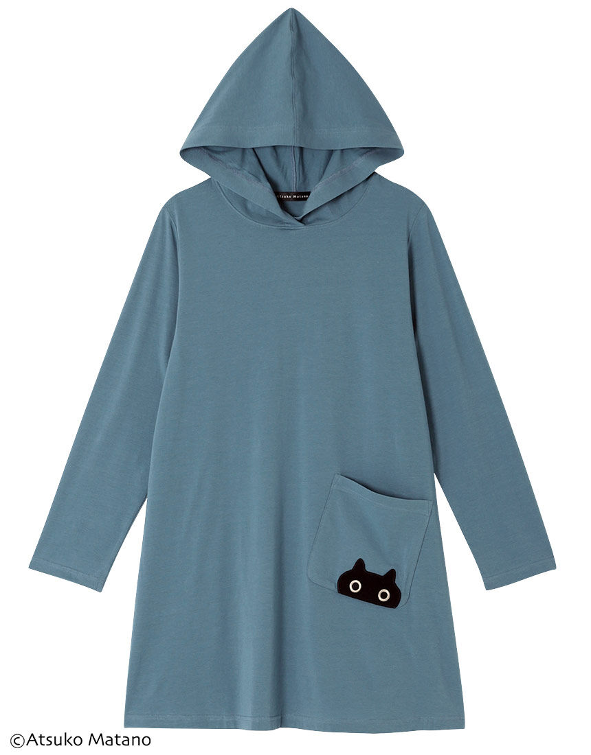 【パーカー(ロング袖)】クリエーター"俣野温子"氏がデザインする、甘くなりすぎない大人かわいいテキスタイルとカラーで、くつろぎ時間を楽しく過ごせるパジャマ&ルームウェア風合いのよい綿混ベア天竺素材。デザイナー俣野温子こだわりの背中の丸みをカバーしすっきりと見せるフード付き。ポケットの黒猫のアップリケがデザインポイント。【サイズ詳細】M:身幅51.0cm 着丈78.5cm 身丈81.0cm 肩幅38.0cm 袖丈56.0cm L:身幅55.0cm 着丈78.5cm 身丈81.5cm 肩幅39.5cm 袖丈56.0cm LL:身幅59.0cm 着丈79.5cm 身丈82.5cm 肩幅41.0cm 袖丈56.5cm※出来上がり寸法を表示しております※サイズ詳細の寸法には多少の差異がございます出来上がり寸法の測り方についてはこちら
