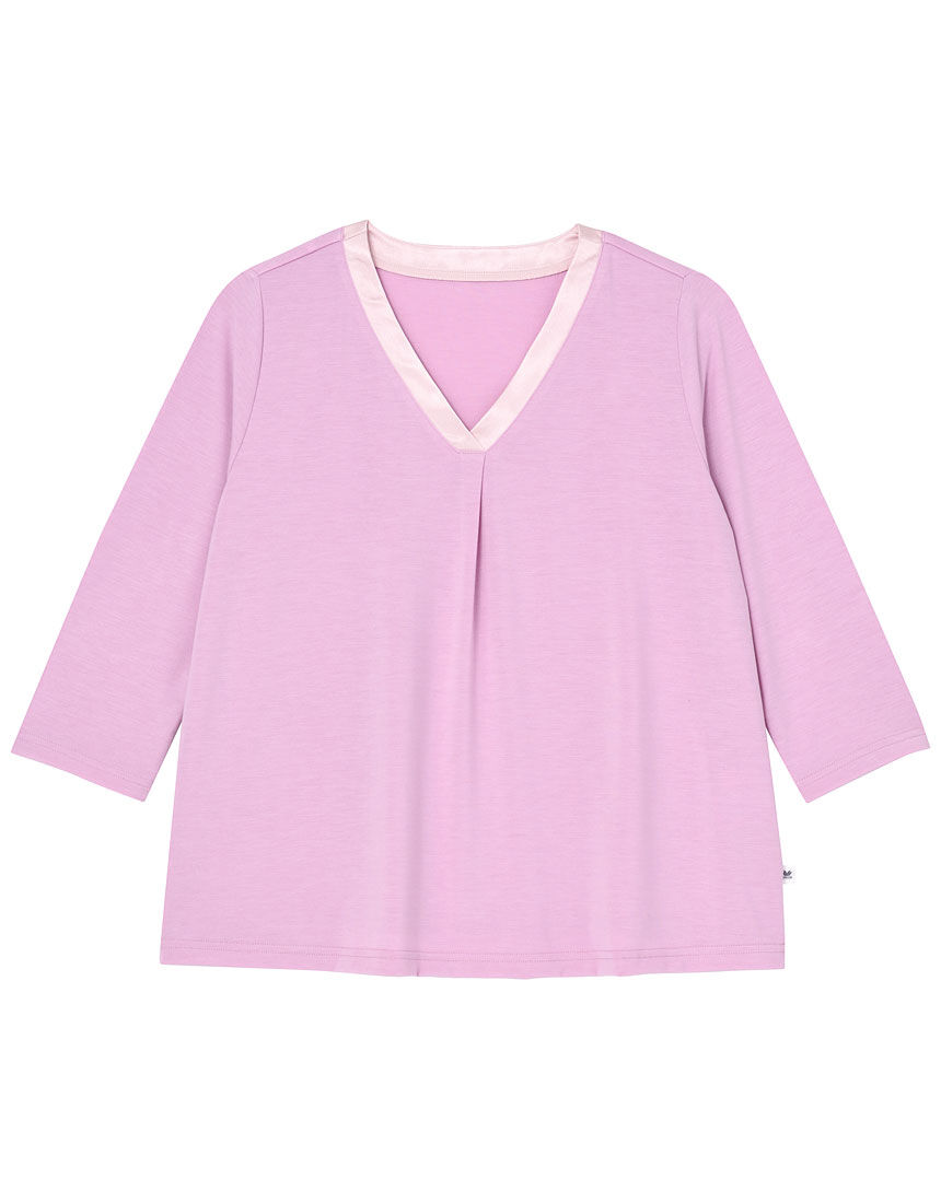 【トップス(7分袖)】ワコール「眠り」や「くつろぎ」の時間を自分らしく、ここちよく、美しく過ごすこと。それが、笑顔で朝を迎えられ、「キレイ」でアクティブな明日への時間へつながる。そんな思いをこめてつくられたパジャマとルームウェアです。ストレッチ性がありドレープが美しいベア天竺素材です。Vネックにサテンのトリムがアクセント。【サイズ詳細】M:バスト100.6cm 着丈55.0cm L:バスト108.6cm 着丈55.0cm LL:バスト116.6cm 着丈56.0cm※出来上がり寸法を表示しております。※サイズ詳細の寸法には多少の差異がございます。出来上がり寸法の測り方についてはこちら