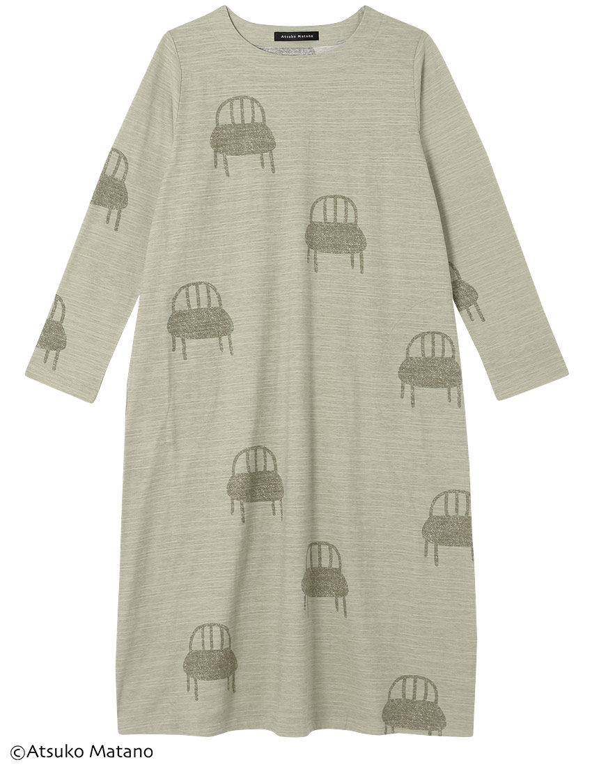 【ワンピース(ロング袖)】クリエーター"俣野温子"氏がデザインする、甘くなりすぎない大人かわいいテキスタイルとカラーで、くつろぎ時間を楽しく過ごせるパジャマ&ルームウェア少しフシの見える生地感が特徴でやさしい肌ざわりの綿100%天竺素材。お昼寝がしたくなる大きい椅子をプリントで表現。【サイズ詳細】M:身幅53.5cm 着丈109.5cm 身丈112.0cm 肩幅39.0cm 袖丈55.5cm L:身幅57.5cm 着丈109.5cm 身丈112.0cm 肩幅40.5cm 袖丈55.5cm※出来上がり寸法を表示しております※サイズ詳細の寸法には多少の差異がございます出来上がり寸法の測り方についてはこちら※アイテムによって柄の出方が異なりますのでご了承ください。