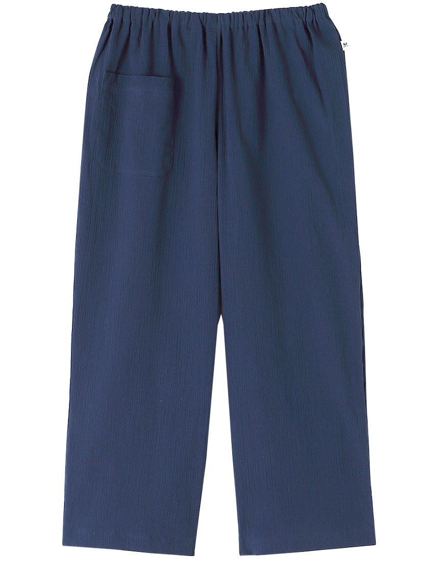 【ボトムス(9分丈パンツ)】「ワコール人間科学研究開発センター」の女性の体型データをもとにした独自のサイズ設計は、ゆったり快適な着ごこち。便利でやさしい工夫をほどこした親切設計のパジャマです。・着ごこちゆったり親切設計のポイント1.やわらかなゴムでウエストがラク2.ズボンの前後がわかりやすい目印付き3.くいこみにくく動きやすいマチ付き4.裾口、ウエストにゴム替え口滋賀県高島市で江戸時代から生産されているちぢみ。通気性があり、凹凸があるので、肌ばなれがよくて夏にここちよい素材です。9分丈のゆったりとしたシルエットのボトム。【サイズ詳細】SP:ズボン脇丈84.0cm ウエスト55.0cm MP:ズボン脇丈84.5cm ウエスト60.0cm LP:ズボン脇丈85.5cm ウエスト65.0cm※出来上がり寸法を表示しております。※サイズ詳細の寸法には多少の差異がございます。出来上がり寸法の測り方についてはこちら