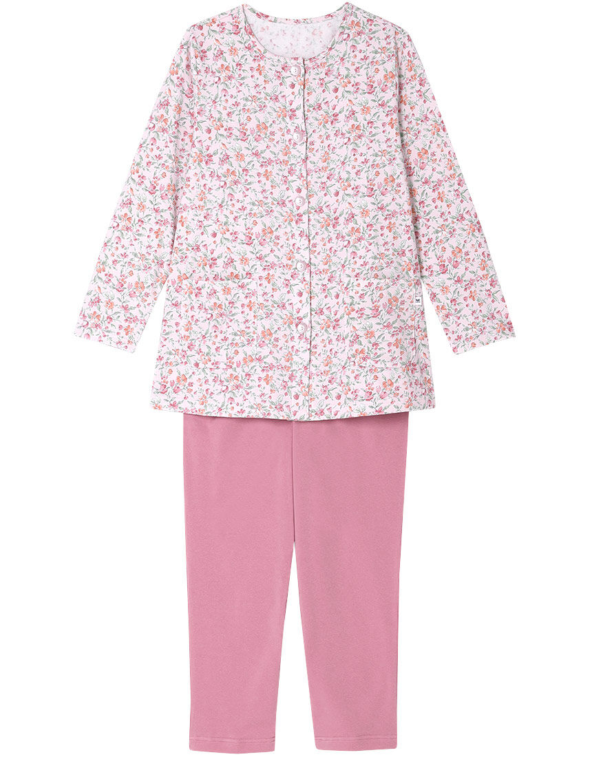 【パジャマ(ロング袖ロングパンツ)】「ワコール人間科学研究開発センター」の女性の体型データをもとにしたグランダー独自のサイズ設計は、ゆったり快適な着ごこち。家庭用タンブル乾燥機対応。肌側のパイルに薄起毛をほどこし保温性にすぐれた素材。イギリスの伝統的な草花柄をイメージしたプリント。【サイズ詳細】SP:身幅49.5cm 着丈63.5cm 身丈66.0cm 肩幅37.0cm 袖丈53.5cm ボトム脇丈90.0cm 裾まわり32.5cm ウエスト55.0cm 股下(レングス)62.0cm ヒップ101.5cm MP:身幅53.5cm 着丈63.5cm 身丈66.0cm 肩幅39.0cm 袖丈53.5cm ボトム脇丈90.5cm 裾まわり34.0cm ウエスト60.0cm 股下(レングス)62.0cm ヒップ106.5cm LP:身幅57.5cm 着丈63.5cm 身丈66.5cm 肩幅41.0cm 袖丈53.5cm ボトム脇丈91.5cm 裾まわり35.5cm ウエスト65.0cm 股下(レングス)62.0cm ヒップ111.5cm M:身幅53.5cm 着丈68.5cm 身丈71.5cm 肩幅40.0cm 袖丈55.0cm ボトム脇丈95.5cm 裾まわり34.0cm ウエスト60.0cm 股下(レングス)65.5cm ヒップ109.5cm L:身幅57.5cm 着丈68.5cm 身丈71.5cm 肩幅42.0cm 袖丈55.0cm ボトム脇丈96.5cm 裾まわり35.5cm ウエスト65.0cm 股下(レングス)65.5cm ヒップ114.5cm LL:身幅61.5cm 着丈69.5cm 身丈72.5cm 肩幅44.0cm 袖丈55.5cm ボトム脇丈96.5cm 裾まわり37.5cm ウエスト70.0cm 股下(レングス)65.5cm ヒップ119.5cm※出来上がり寸法を表示しております※サイズ詳細の寸法には多少の差異がございます出来上がり寸法の測り方についてはこちら表面フラッシュにご注意ください台所等で火を扱う場合には、表面の毛羽に引火することがありますので、十分にご注意ください。また、裏返して着用しないでください。「表面フラッシュとは」生地の表面毛羽に着火した火が、毛羽から毛羽へ、非常に早いスピードで、瞬時に火が走る現象です。パイル・タオル地や表面を起毛した素材で起こりやすく、綿やレーヨンなど植物せんい使用の素材にも、注意が必要です。これにより、火傷や火事になることも考えられます。炊事や暖房機具等の火には、十分ご注意ください。