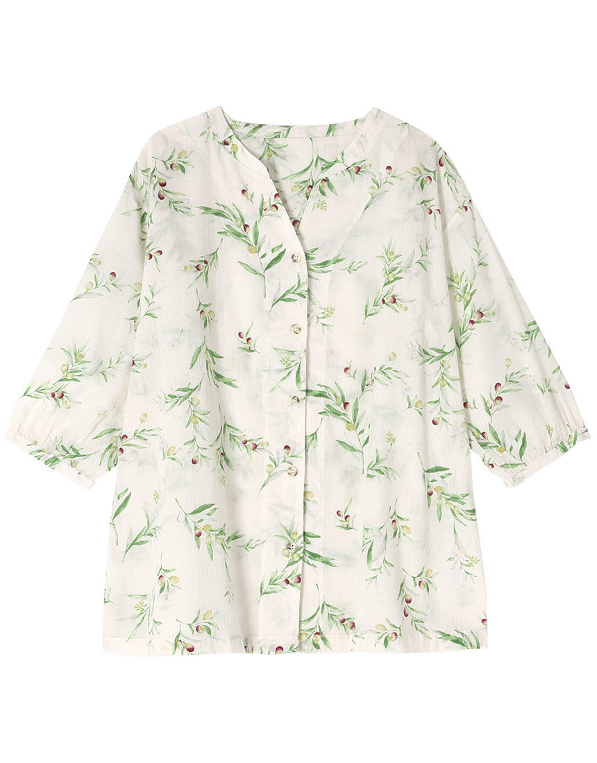 【トップス(7分袖)】ワコール「眠り」や「くつろぎ」の時間を自分らしく、ここちよく、美しく過ごすこと。それが、笑顔で朝を迎えられ、「キレイ」でアクティブな明日への時間へつながる。そんな思いをこめてつくられたパジャマとルームウェアです。撚りの強いヨコ糸を使うことで、全体に凹凸をつけた楊柳素材です。肌ばなれがよく、夏にここちよいさらりとした風合い。夏に映えるグリーンを効かせたオリーブをモチーフとした柄プリント。抜け感のある襟もとが涼しげな印象のデザイン。※アイテムによって柄の出方が異なりますのでご了承ください。【サイズ詳細】M:バスト108.0cm 着丈67.0cm L:バスト116.0cm 着丈67.0cm LL:バスト124.0cm 着丈68.0cm※出来上がり寸法を表示しております。※サイズ詳細の寸法には多少の差異がございます。出来上がり寸法の測り方についてはこちら