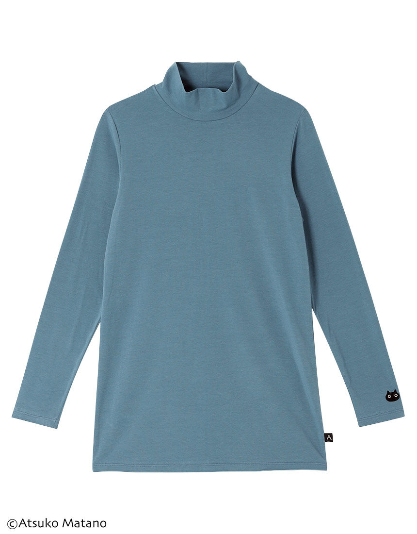 【トップス(ロング袖)】クリエーター"俣野温子"氏がデザインする、甘くなりすぎない大人かわいいテキスタイルとカラーで、くつろぎ時間を楽しく過ごせるパジャマ&ルームウェア風合いのよい綿混ベア天竺素材。無地のハイネックシャツはコーディネイトで活躍する一着。左袖口の小さい黒猫のアップリケがデザインポイント。【サイズ詳細】M:身幅43.0cm 着丈67.5cm 身丈69.0cm 肩幅34.0cm 袖丈56.0cm L:身幅47.0cm 着丈67.5cm 身丈69.0cm 肩幅35.5cm 袖丈56.0cm LL:身幅51.0cm 着丈68.5cm 身丈70.5cm 肩幅37.0cm 袖丈56.5cm※出来上がり寸法を表示しております※サイズ詳細の寸法には多少の差異がございます出来上がり寸法の測り方についてはこちら