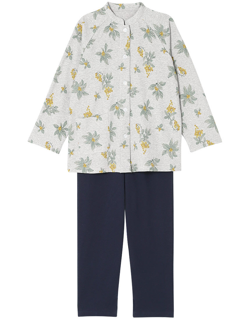 【長袖・レモンボタン】白い花が咲き誇るすがすがしい印象の花柄。凹凸があり肌ばなれのよいピケニット素材。ボタンホールに出し入れしやすいように工夫した、大きめのレモン型ボタン。くぼみが付いてつまみやすいので、留めはずしがラク。※トップス前ポケット付き、ボトムロング丈DNL503と同素材。【サイズ詳細】※身長146cm?154cmに対応しています。SP:バスト100.0cm、着丈63.0cm、ズボン脇丈91.0cm、ウエスト60.0cm MP:バスト108.0cm、着丈63.0cm、ズボン脇丈92.0cm、ウエスト65.0cm LP:バスト116.0cm、着丈63.0cm、ズボン脇丈93.0cm、ウエスト71.0cm※でき上がり寸法を表示しています。※サイズ詳細の寸法には多少の差異がございます。出来上がり寸法の測り方についてはこちら